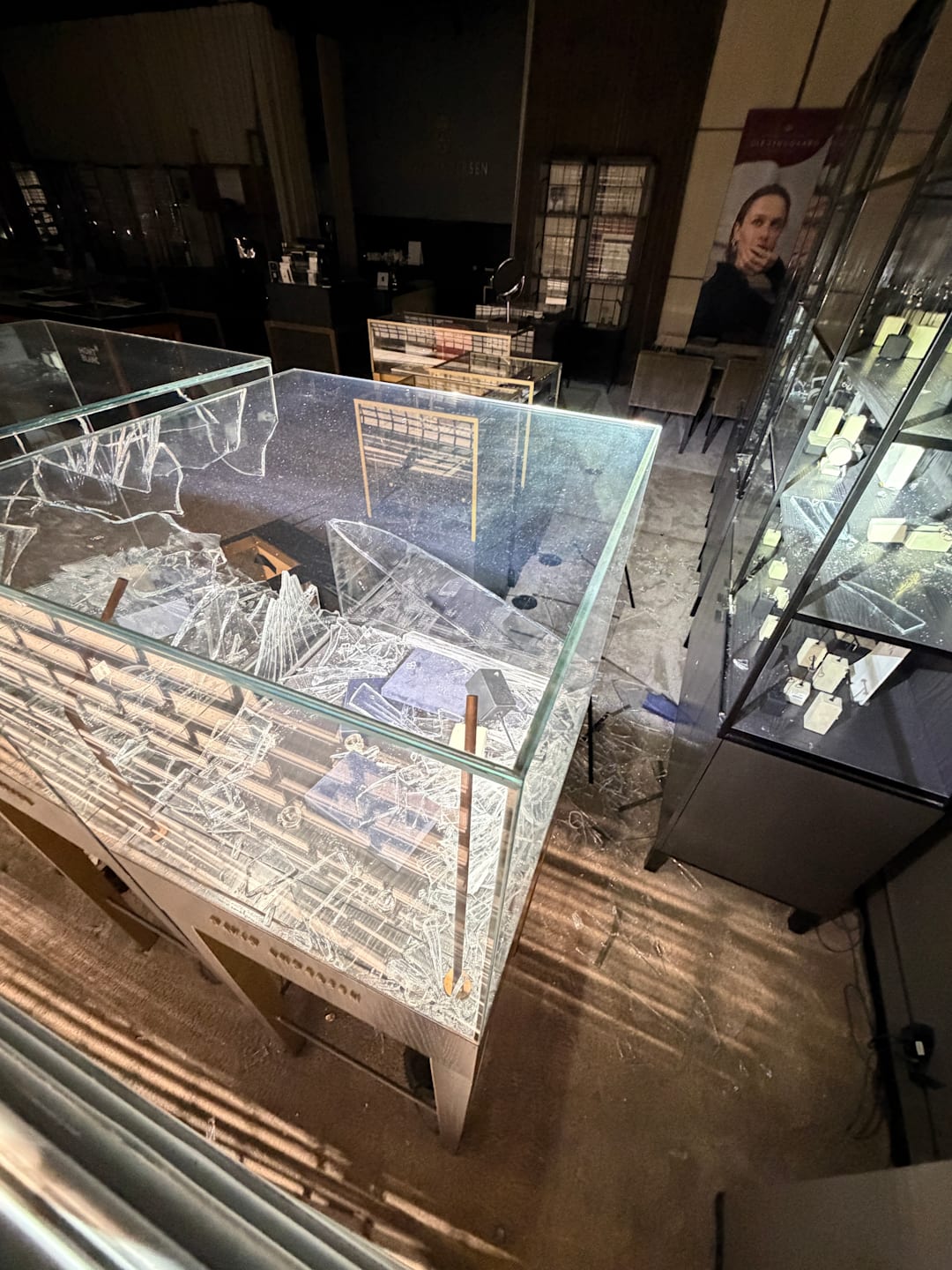 Inne på senteret har tyven knust en rute til for å komme til gangen der gullsmeden lå, forteller Nygaard.