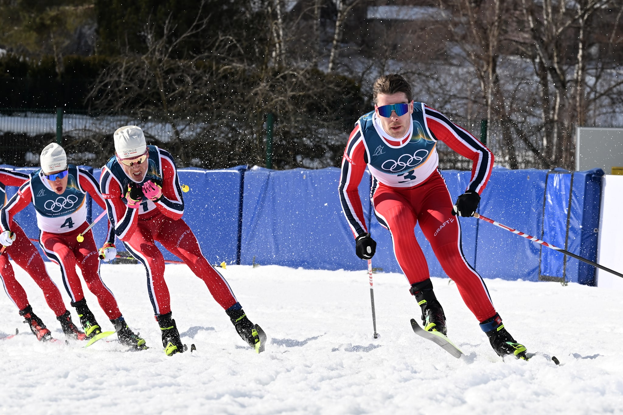 Sølvvinner Desloges gikk feil, Edvin Anger gikk i bakken. Det samme gjorde Harald Østberg Amundsen. Mattis Stenshagen holdt seg unna uhell, men kom i mål på en beskjeden 21. plass, nesten to minutter bak seirende Klæbo.