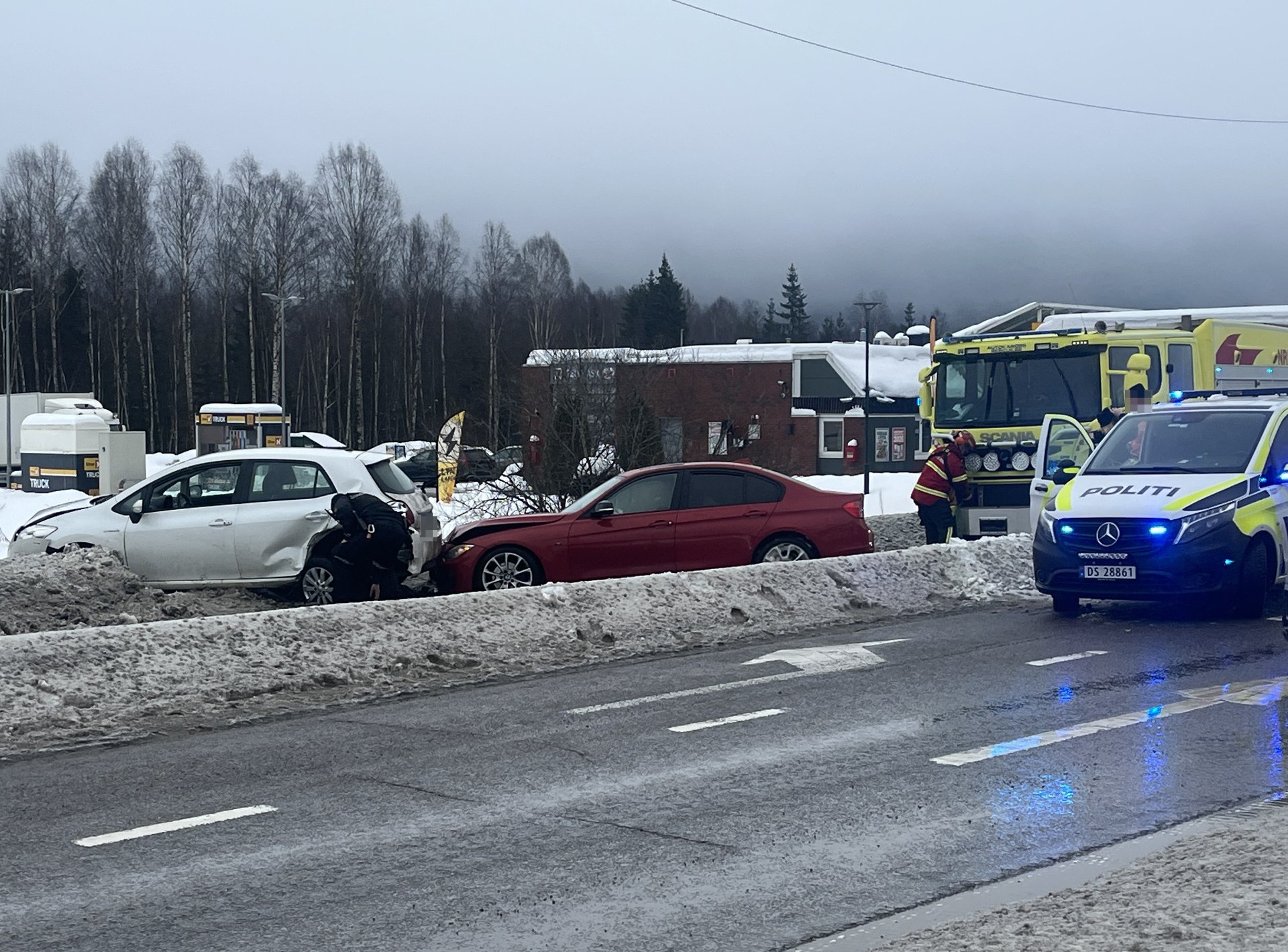 Klokken 20.10, fredag kveld, fikk nødetatene melding om en trafikkulykke der to biler er involvert. mellom to biler.
