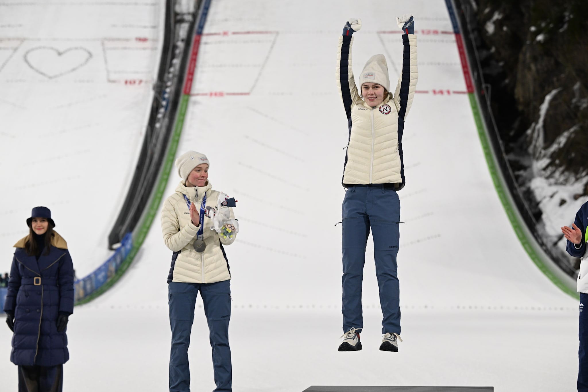 For aller første gang fikk kvinnehopperne konkurrere i storbakken i et OL. Hoppkvinnene fikk først delta i OL i 2014 – og måtte vente ytterligere tolv år før storbakken ble en del av OL-programmet.