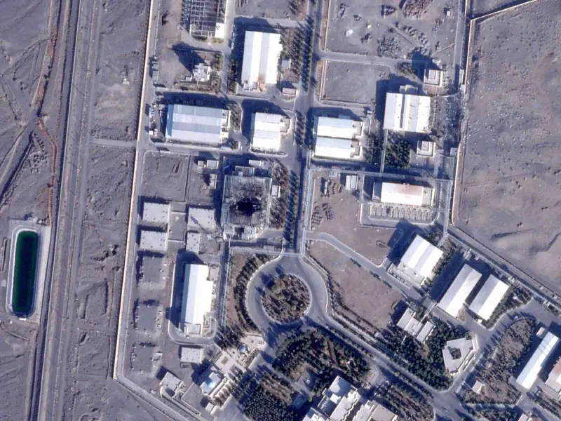 "image_caption" : "Under tolvdagerskrigen i juni i fjor gjennomførte Israel og USA omfattende luftangrep mot iranske atomanlegg i Fordo, Isfahan og Natanz. Dette satellittbildet fra Planet Labs PBC viser vrakrester fra deler av Natanz-anlegget, tatt i desember 2025.",