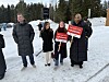 "caption" : "Nestleder i Høyre Henrik Asheim (f.v.) og arbeidspolitisk talsperson Anna Molberg kom ut fra Høyres landsmøte på Gardermoen for å snakke med demonstranter, her representert ved SVs Marian Hussain og Aps Agnes Viljugrein, begge fra Stortingets arbeids- og sosialkomite."