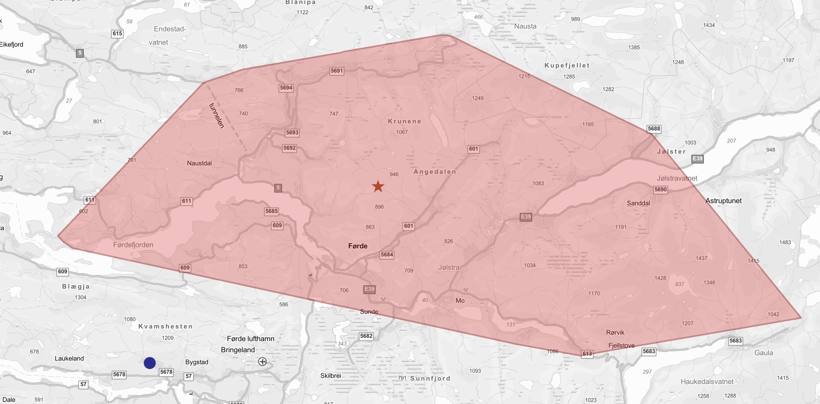 Klokka 22:09 blei det rapportert inn feil pÄ straumnettet til BKK, som rÄka kundar frÄ Naustdal i vest til JÞlster i aust. 2602 kundar mista straumen i starten, og tipsarar melde om helt mÞrklagde omrÄde i bÄde Naustdal og JÞlster.