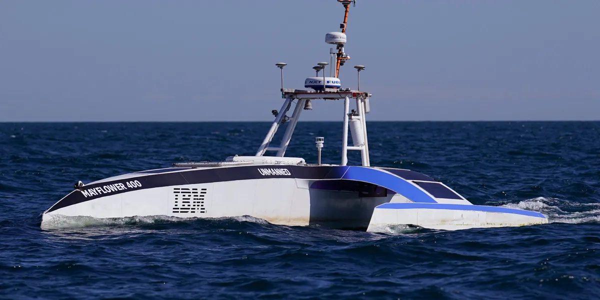 <media:description type="plain">Selvkjørende skip må tolke omgivelsene sine korrekt. Så hva om dataene er manipulert? Den autonome båten Mayflower krysset Atlanteren fra England til USA i juni 2022. Foto: Charles Krupa/AP/NTB</media:description>