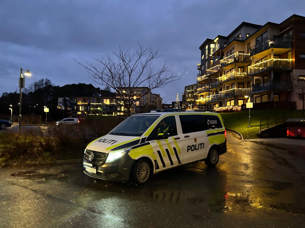 Her står politiet på vakt ved borettslaget
