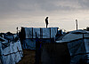 "caption" : "En palestinsk gutt står på toppen av et telt etter mye regnvær søndag 16. november.",