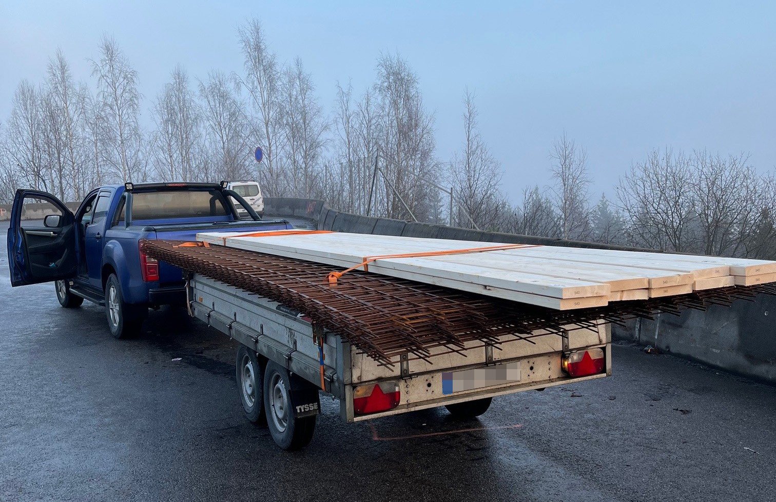 En av bilene som fikk bruksforbud fikk dette som følge av farlig last på henger. I dette tilfellet dreide det seg om armeringsjern som stakk utenfor hengerens karmer.