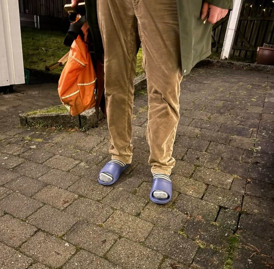 Skoløse Jacob Conradi har rukket hjemom for å skifte ut av sandaler, og over i noe litt varmere.