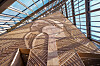 "caption" : "Pyramiderommet i det nye Regjeringskvartalet vises frem med kunstverket AAkhA av kunstneren Outi Pieski.",