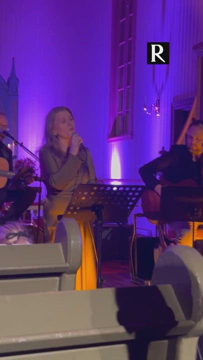 Karoline Sæter synger "Når kjerkeklokka slår" sammen med Emilie Aasvangen i Ingeborgrud kirke.