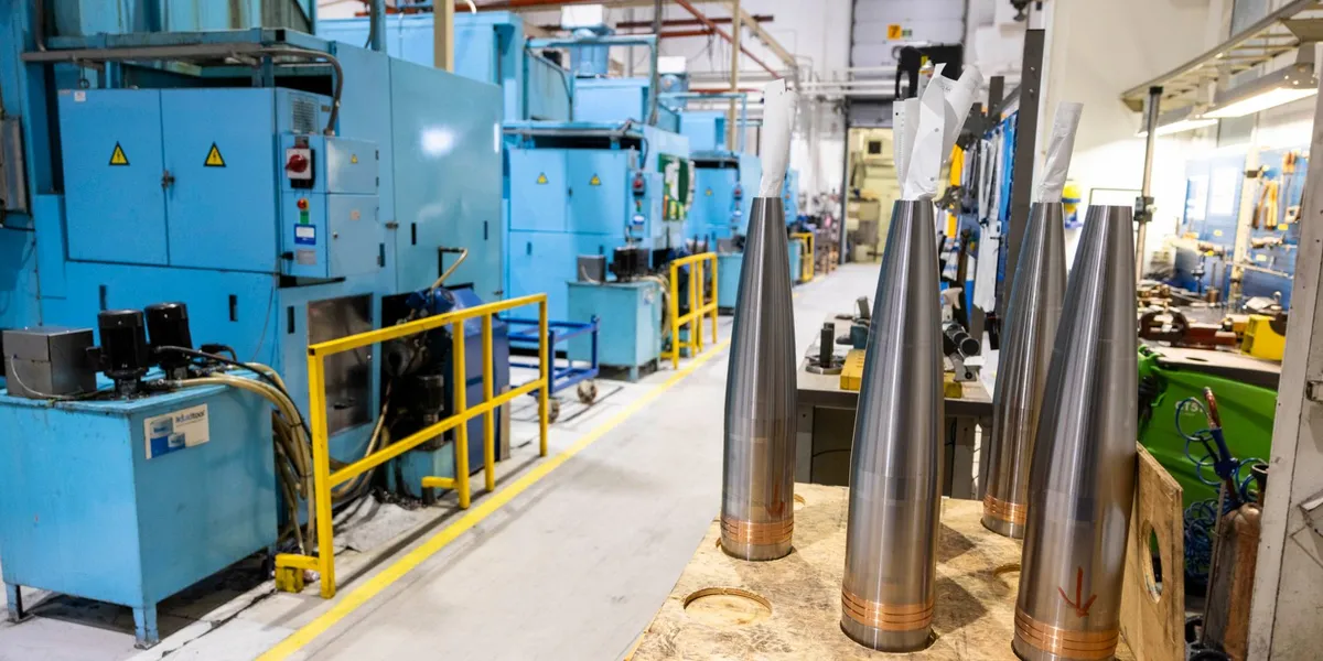 <media:description type="plain">Produksjon av 155 mm artellerigranater hos Nammo. Foto: Gunnar Lier</media:description>