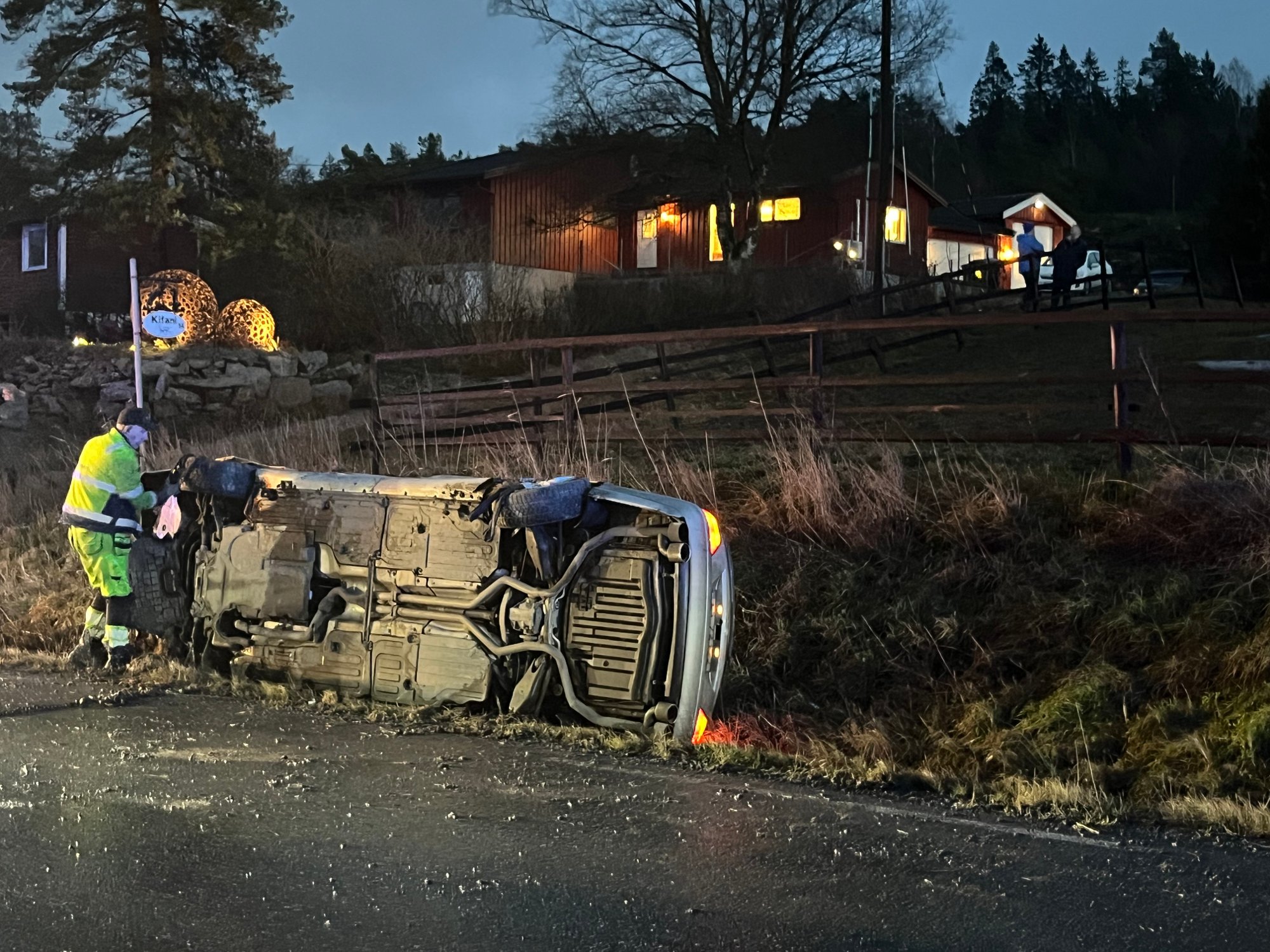 Rykket ut på ulykke: – Én bil ligger på siden