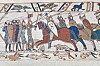 "caption" : "Det berømte Bayeuxteppet fra rundt 1070 viser hvordan Vilhelm Erobreren inntok England, blant annet ved å vinne slaget ved Hastings i oktober 1066. Harald Hardråde er ikke med på teppet, for han var allerede død, falt i slaget ved Stamford bro to uker tidligere. Men også der skal bakken ha vært dekket av døde og sårede, i Haralds største militære nederlag.",