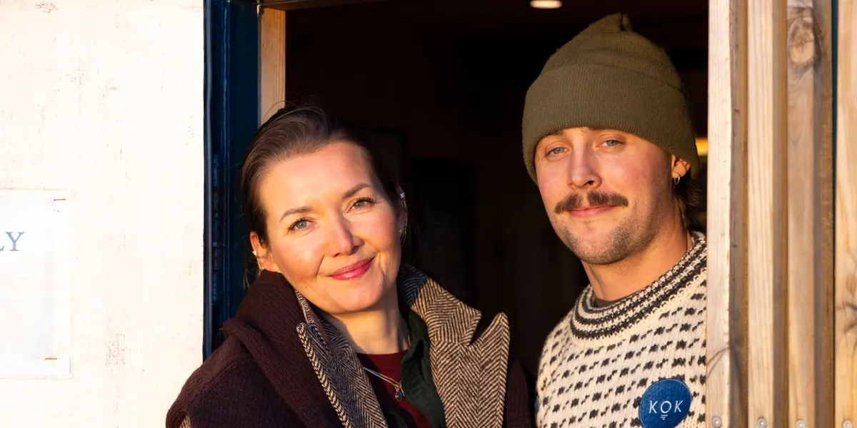 <media:description type="plain">Kok-gründer Kristin Lorange sammen med badstumester og skipper Michael Krohn på Langkaia i Oslo. Foto: Hanna Johre</media:description>