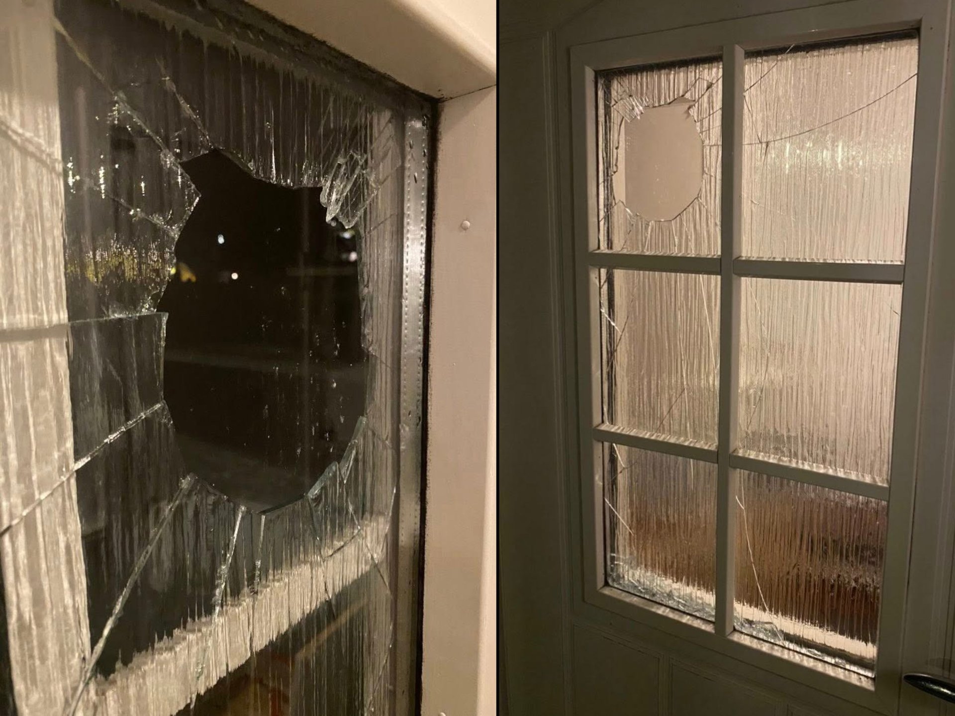 Mens huseier var i juleselskap ble vinduet i ytterdøra knust.