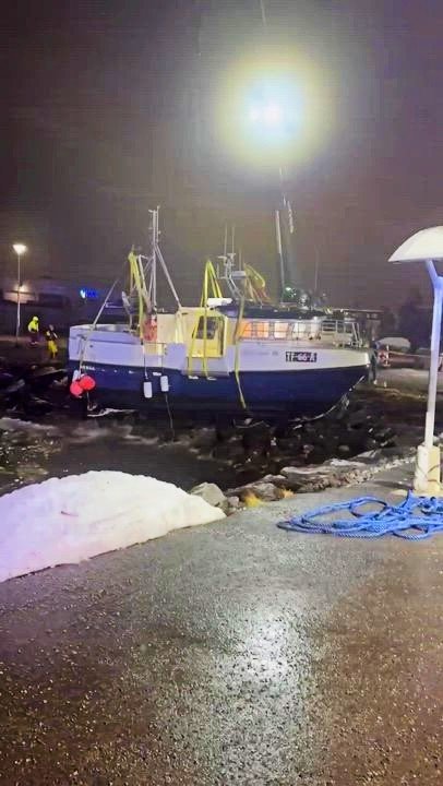 Se sjarken reddes på land