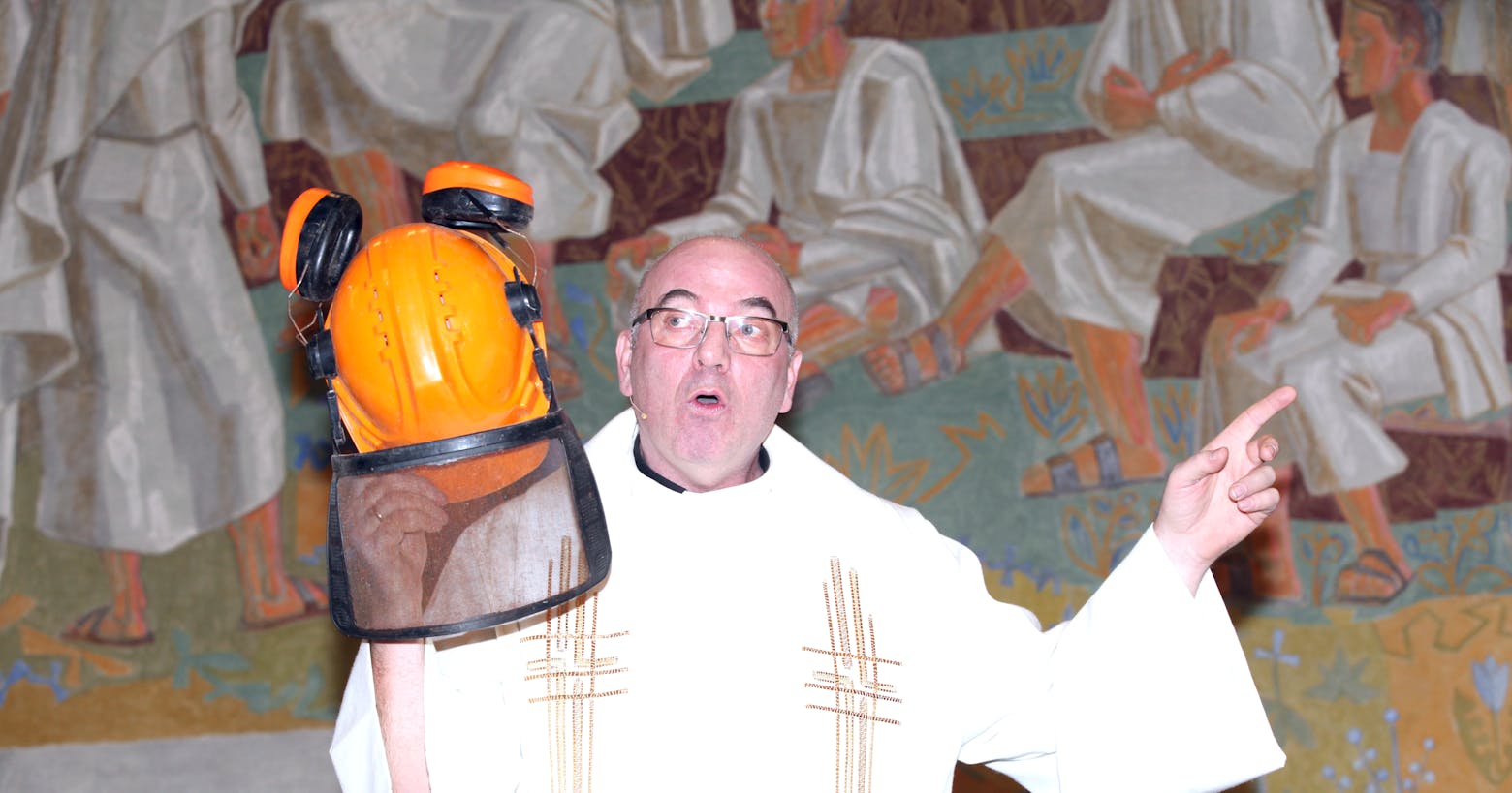 Presten stilte med beskyttelseshjelm på julaften