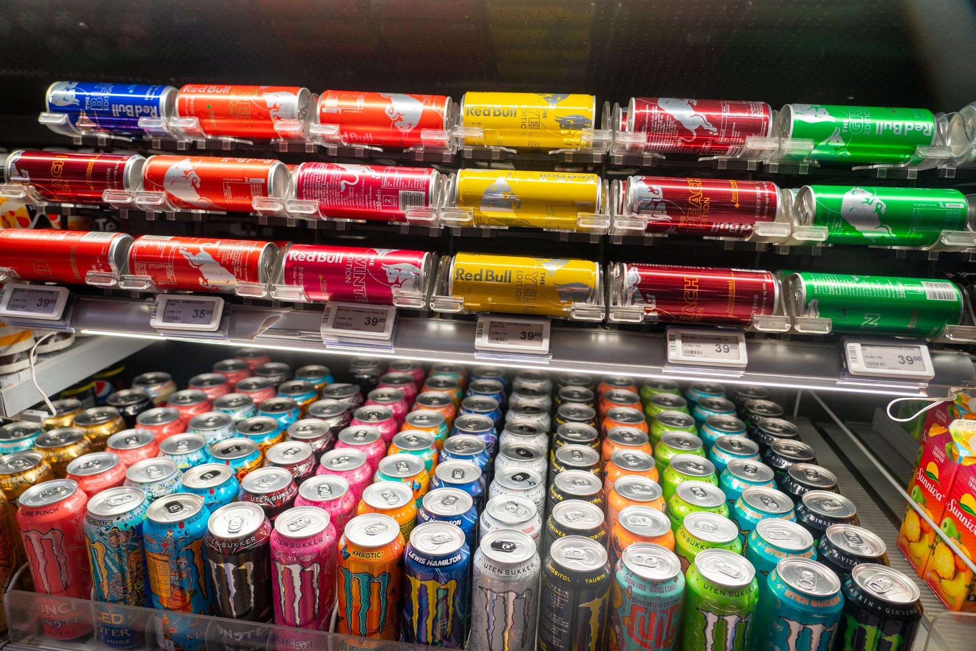 Nå blir det 16 års aldersgrense for kjøp av energidrikk. Aldersgrensen gjelder også i kantiner, på automater, på festivaler og på idrettsarrangementer. Om man kjøper på nettet, så skal alderen sjekkes før man får utlevert varen.