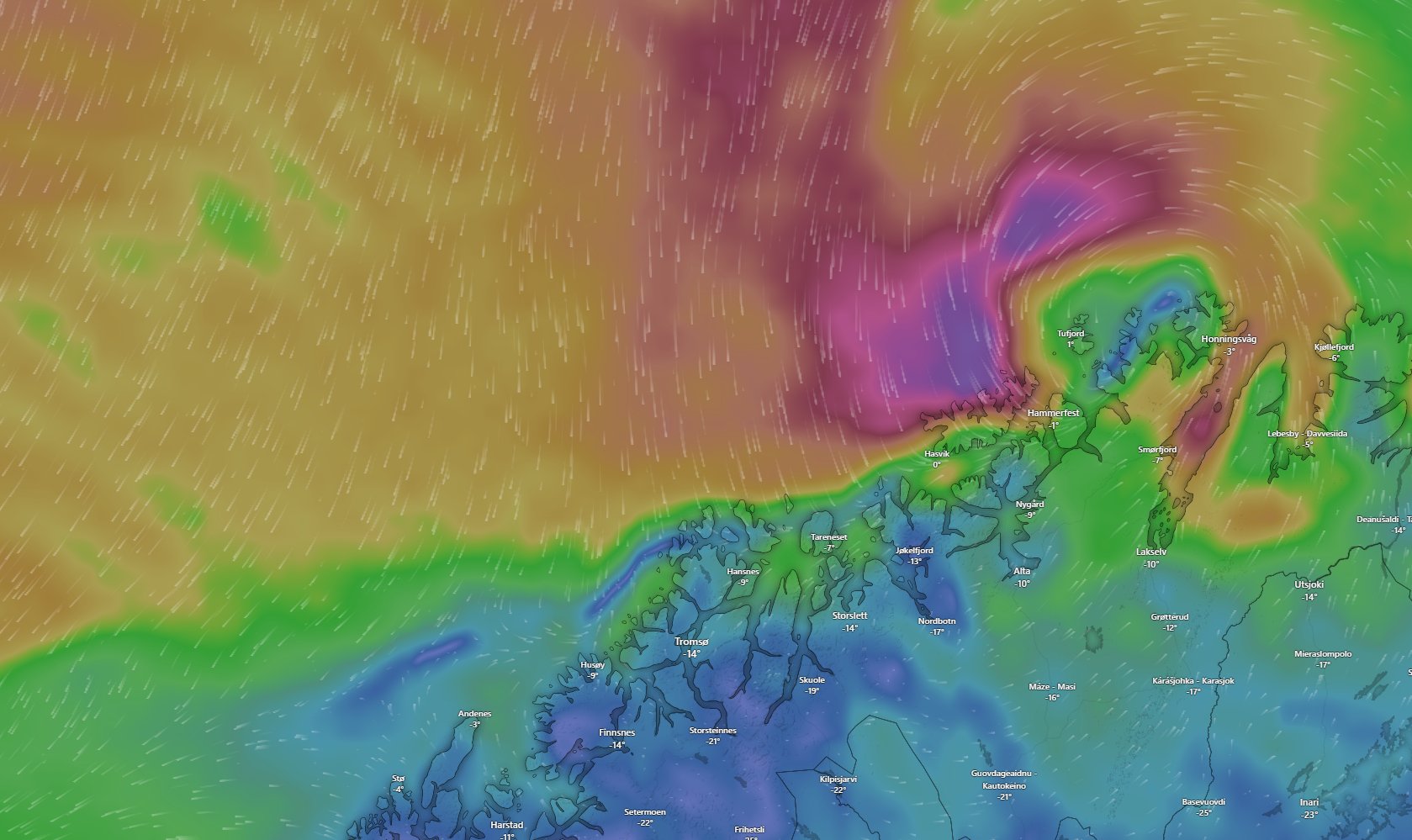 Men også deler av Troms rammes, ifølge prognosene. Det polare lavtrykket er ventet å treffe så langt sør som Senja.