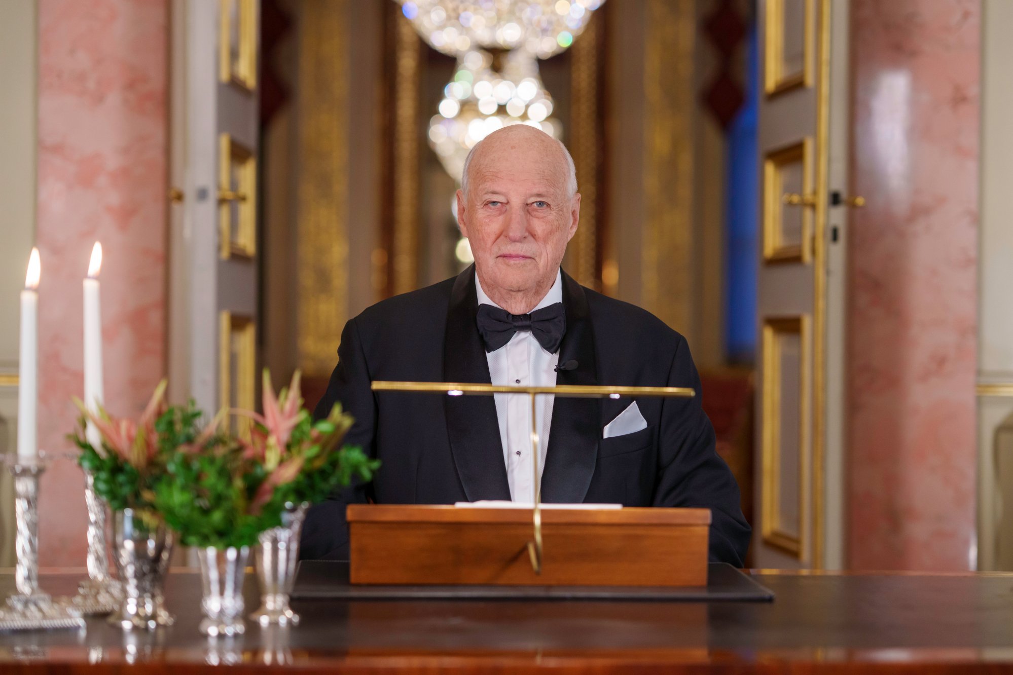 – Det er lett å forstå at mange kan bli både urolige og nedfor sånn som verden ser ut i dag. Den kjente verdensordenen som vi har fulgt i mange tiår er i omveltning. Daglig ser vi eksempler på at demokratiske prinsipper vakler og minoriteters rettigheter svekkes – også i vår del av verden, sier kong Harald fra talerstolen.
