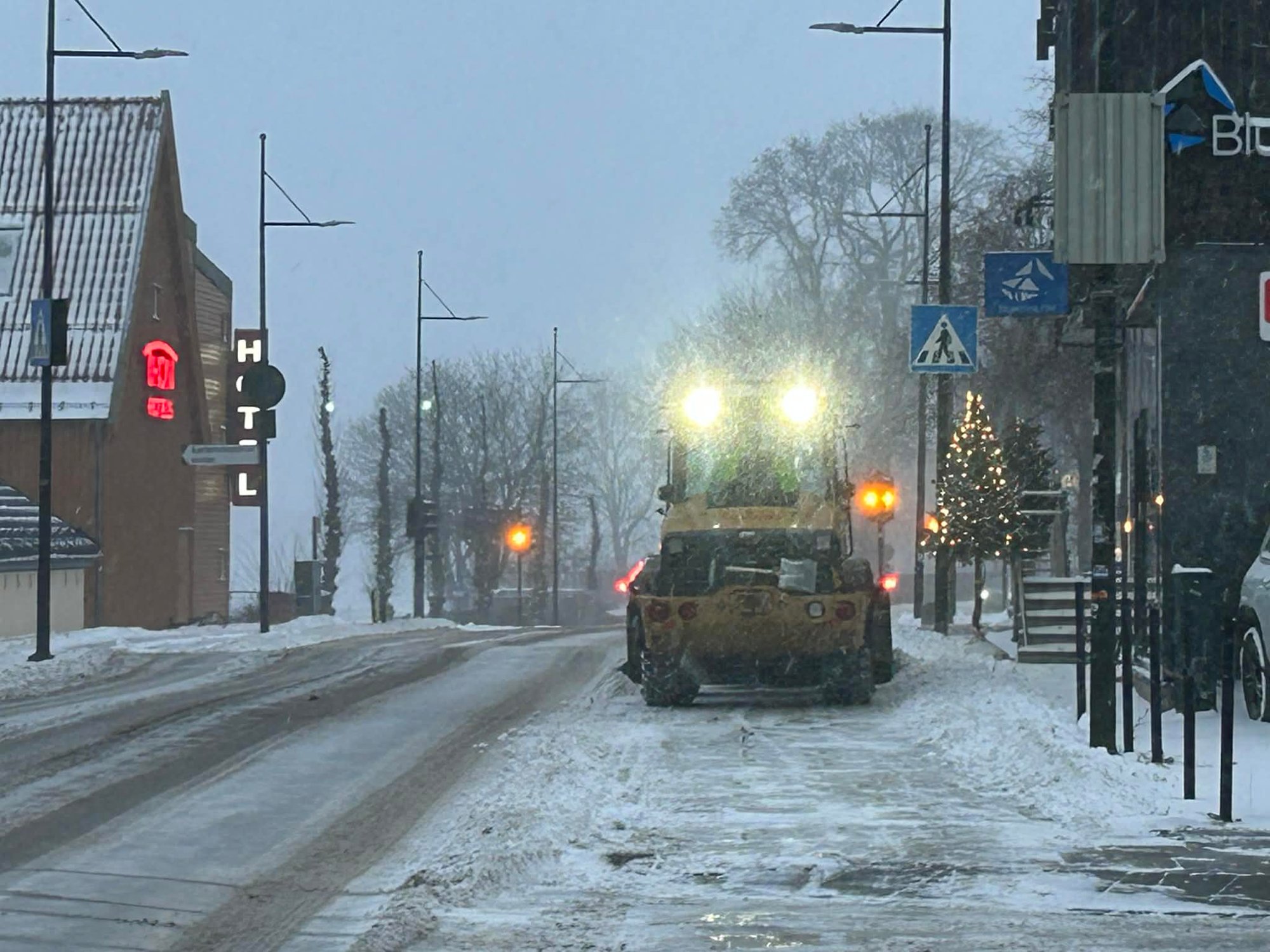 For første gang i vinter er mannskapene ute for å rydde snø.