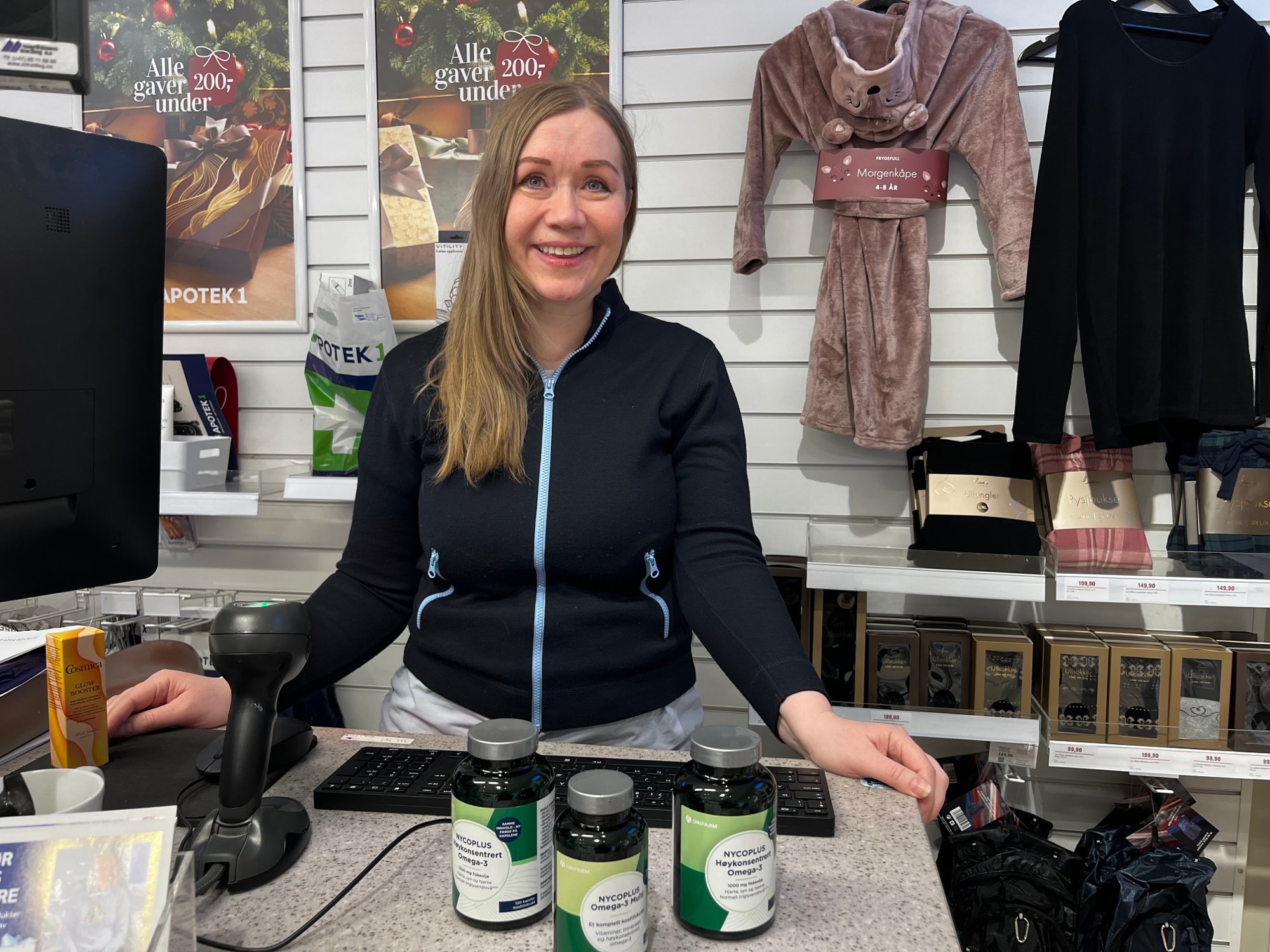 Apotektekniker Cathrine Berg opplever at norske omega-3 kapsler trender på kinesiske sosiale medier.