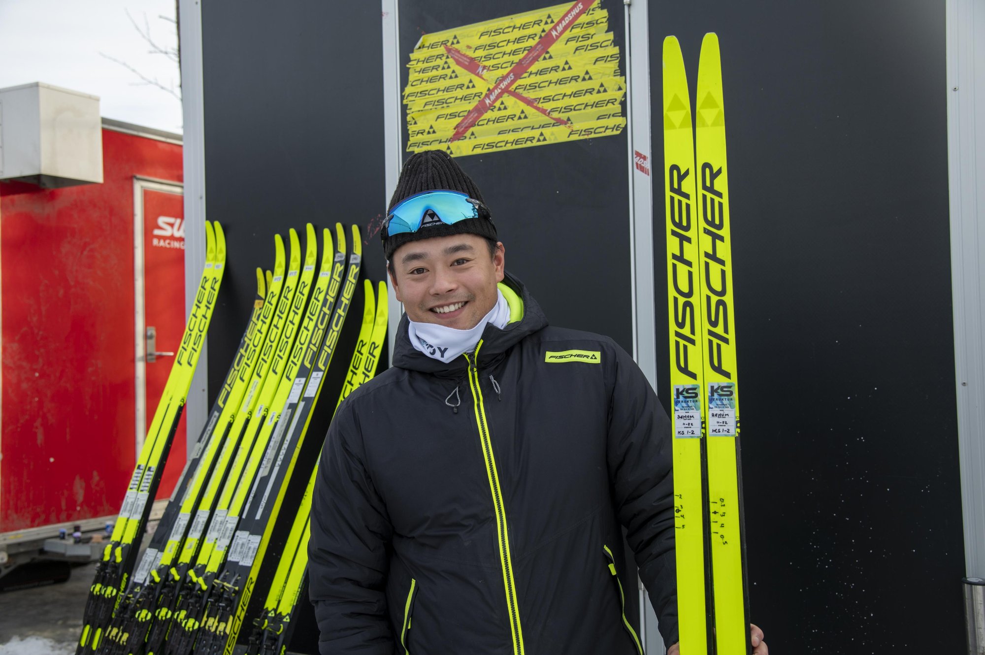 David Viik testet mange ski for langrennsløperne under Tour de Ski i Italia.