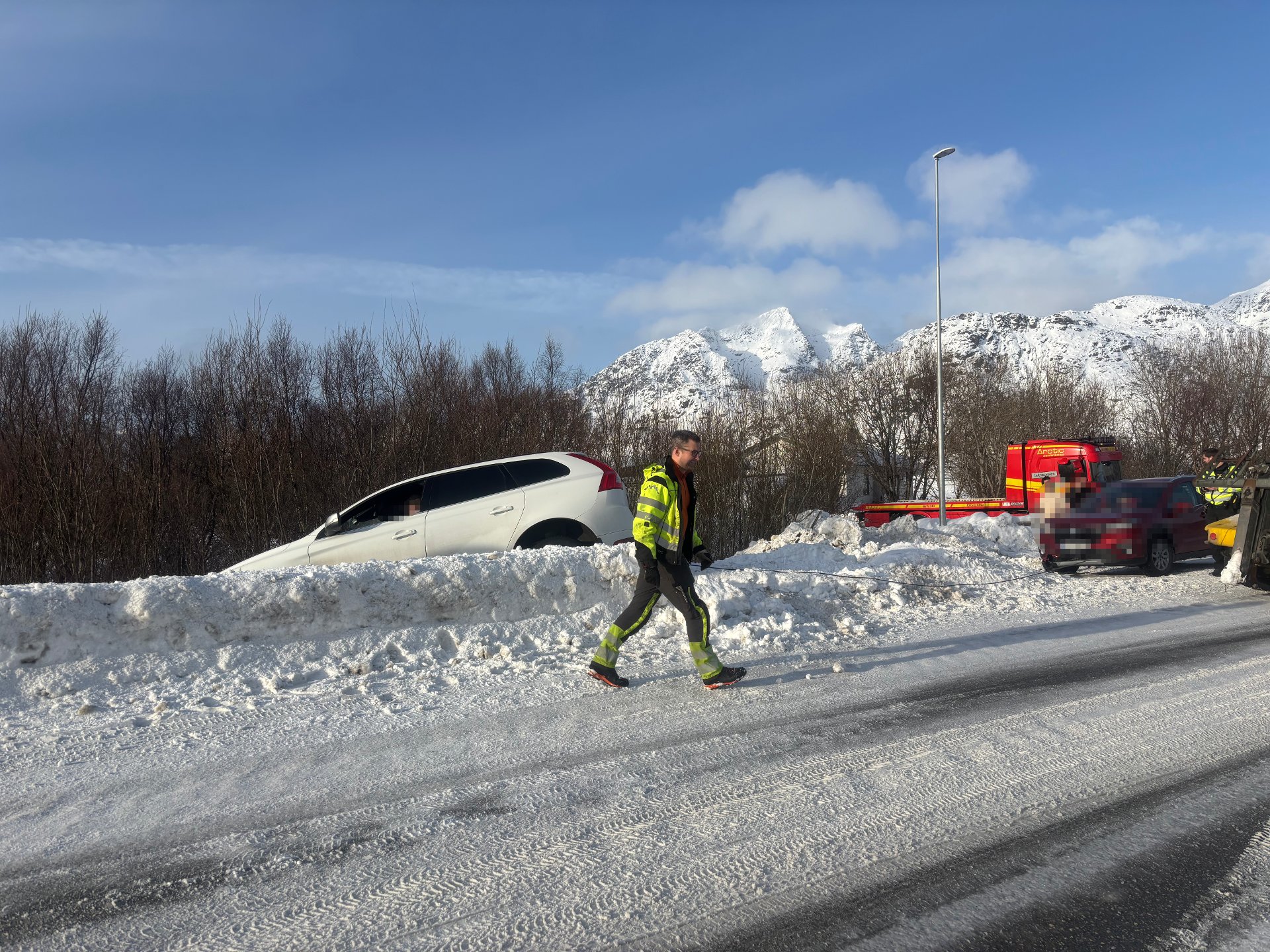 Tirsdag formiddag rykker nødetatene ut etter melding om ei trafikkulykke mellom to kjøretøy på E10 i Kabelvåg.