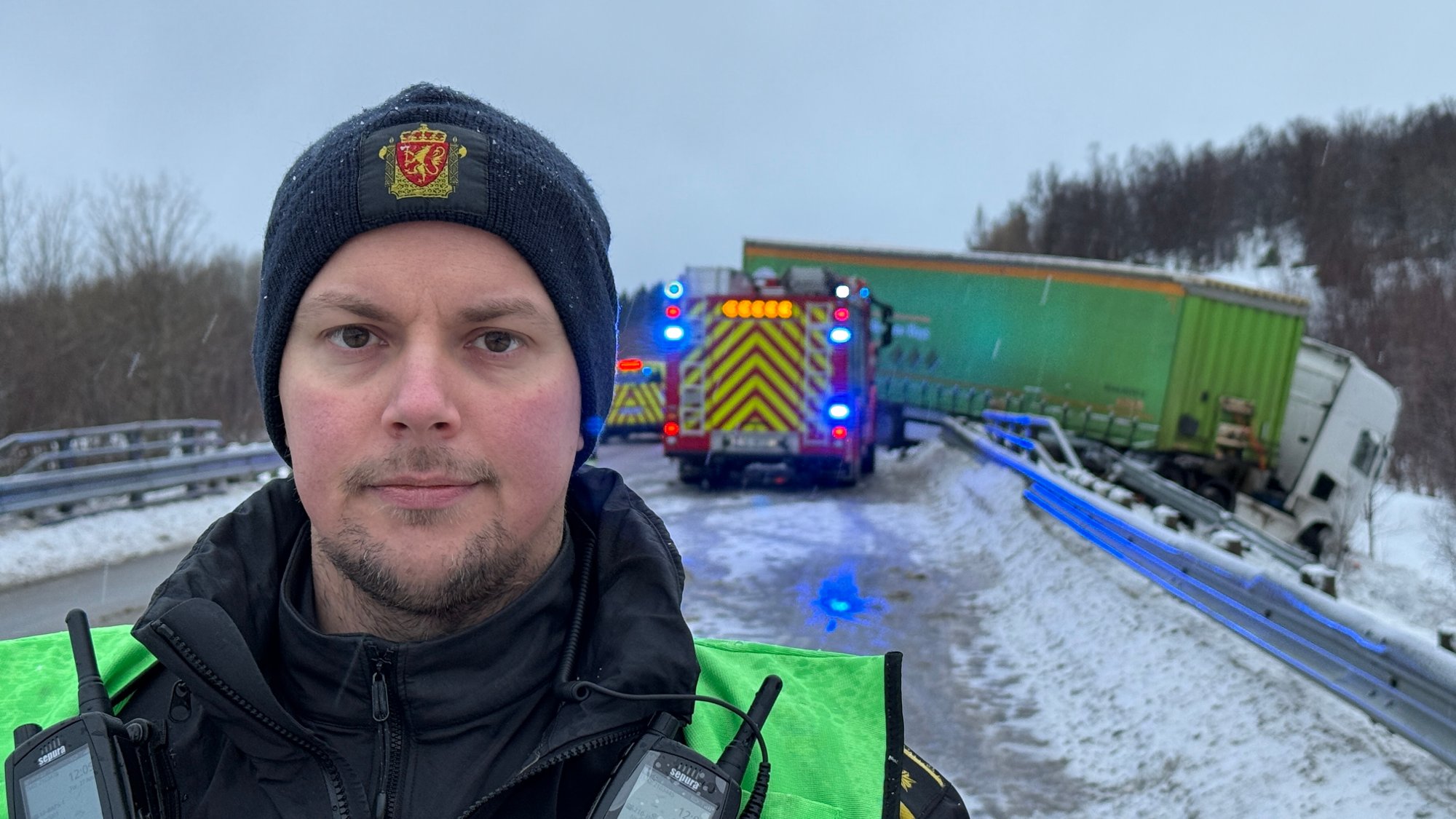 "description" : "Semitraileren som kjørte av veien på E10 vest for Bjerkvik klokken 11 torsdag lekker diesel."