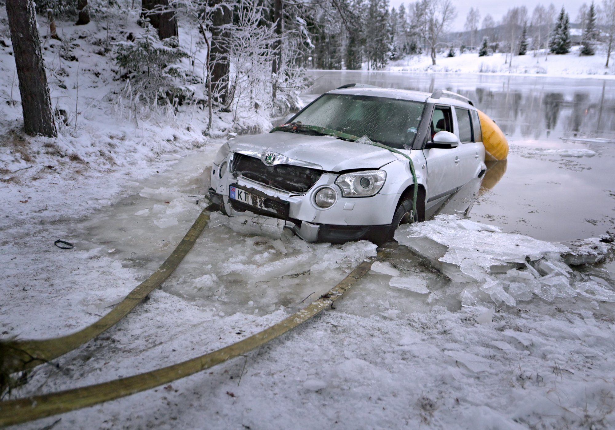 PlusI 15 minus måtte dykkere fra Buskerud Dykkerservice berge en bil som hadde trillet i lågen