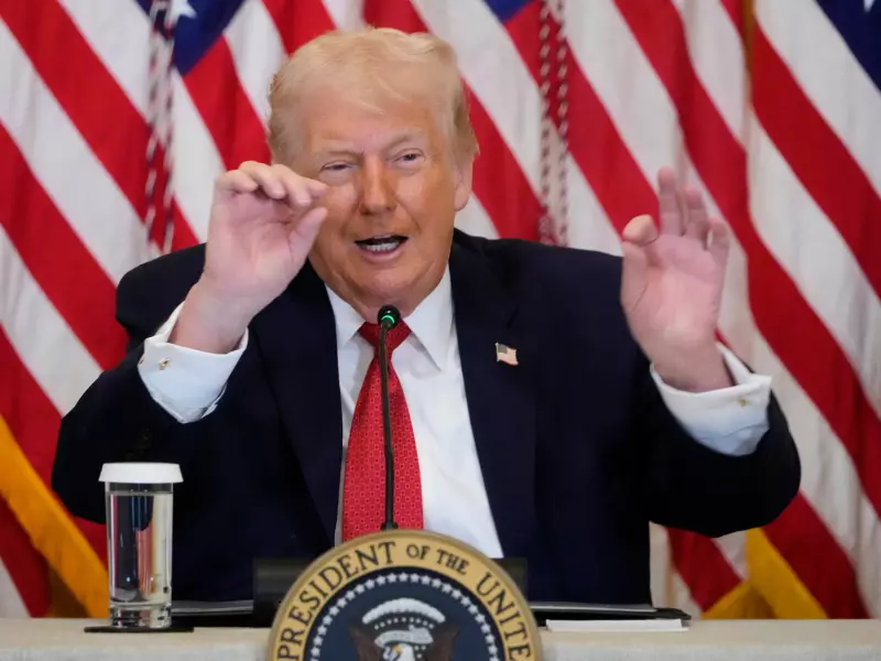 Den amerikanske presidenten Donald Trump sier på en pressekonferanse fredag at de vurderer å innføre straffetoll mot land som ikke støtter planene hans om å overta Grønland.
