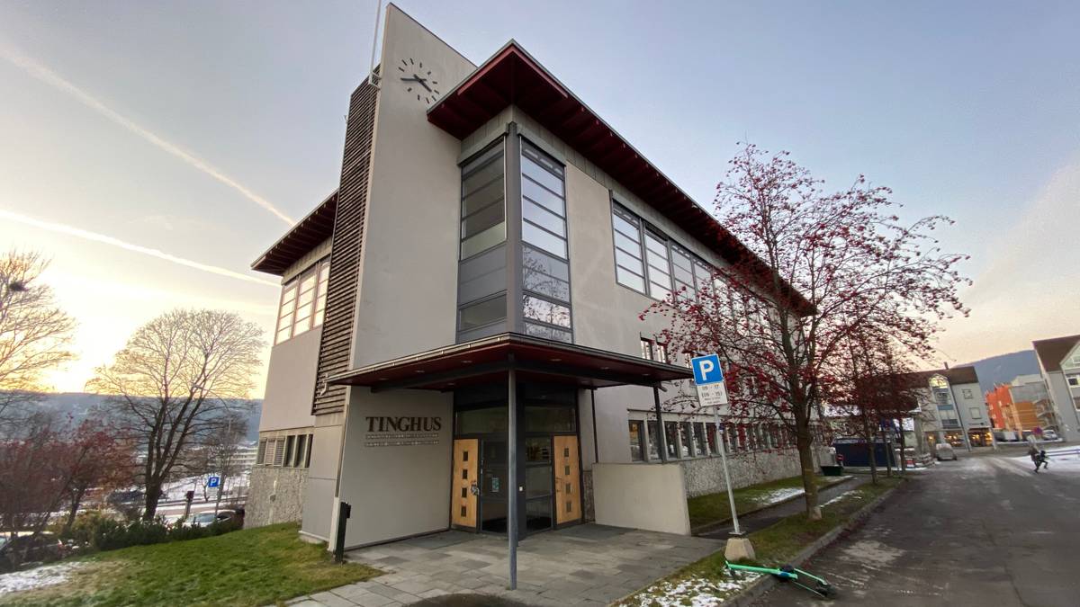 <media:title>Bilde av Tinghuset, en moderne bygning med store vinduer og klokke på taket. Omgivelsene inkluderer trær med røde blader og en parkeringsplass. Det er snø på bakken, og en person kan ses i bakgrunnen. Bygningens fasade er delvis kledd med treverk.</media:title>