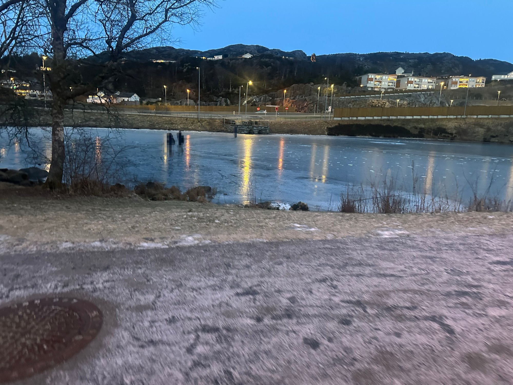 4. jan 15:46 Flere ungdommer var ute pÄ tynn is da journalisten kom skulle ta bilde av vannet. De gikk pÄ land, men sÄ kom det nye til. (Haugesund avis 217b)