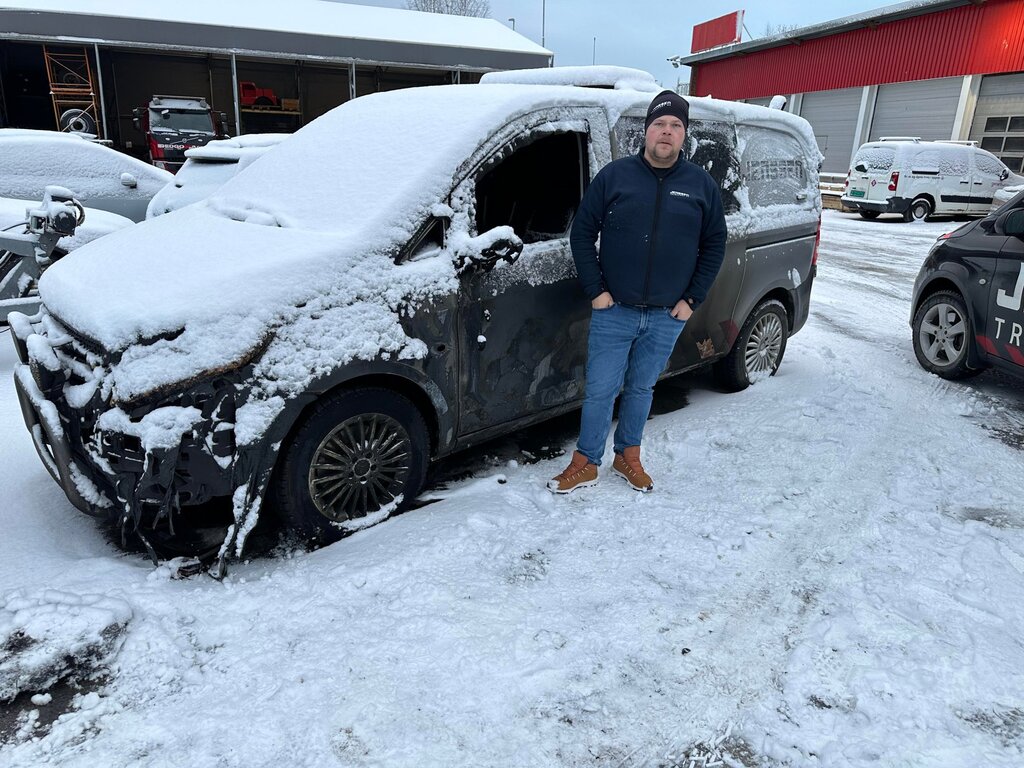 Da Thomas Jenssen kom for å hente bilen på parkeringsplassen, var den borte. Det viste seg at noen hadde satt fyr på den spesiallagede firmabilen den natta.