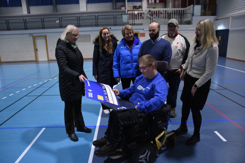 Overraskelsen var stor da Sebastian Barkhald Borg og styret i Mærehallen så størrelsen på beløpet Berit Rustad i Sparebankstiftelsen SMN hadde med seg.