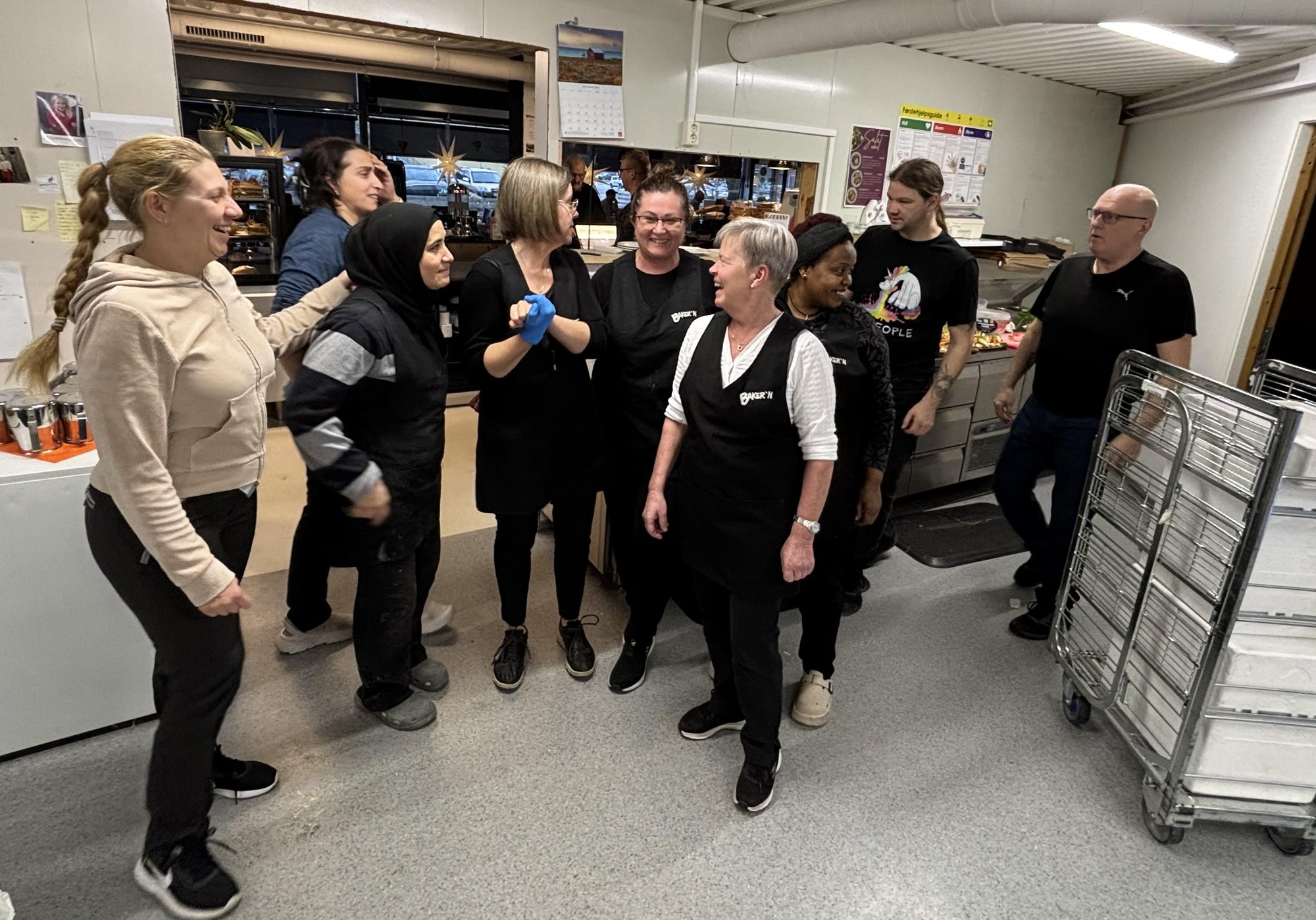 27. nov 10:32 Det er ingen av de som jobber på Baker'n som har lunsjpause midt på dagen. Mat har de riktignok rikelig tilgang på. (Steinkjer-Avisa 250b)