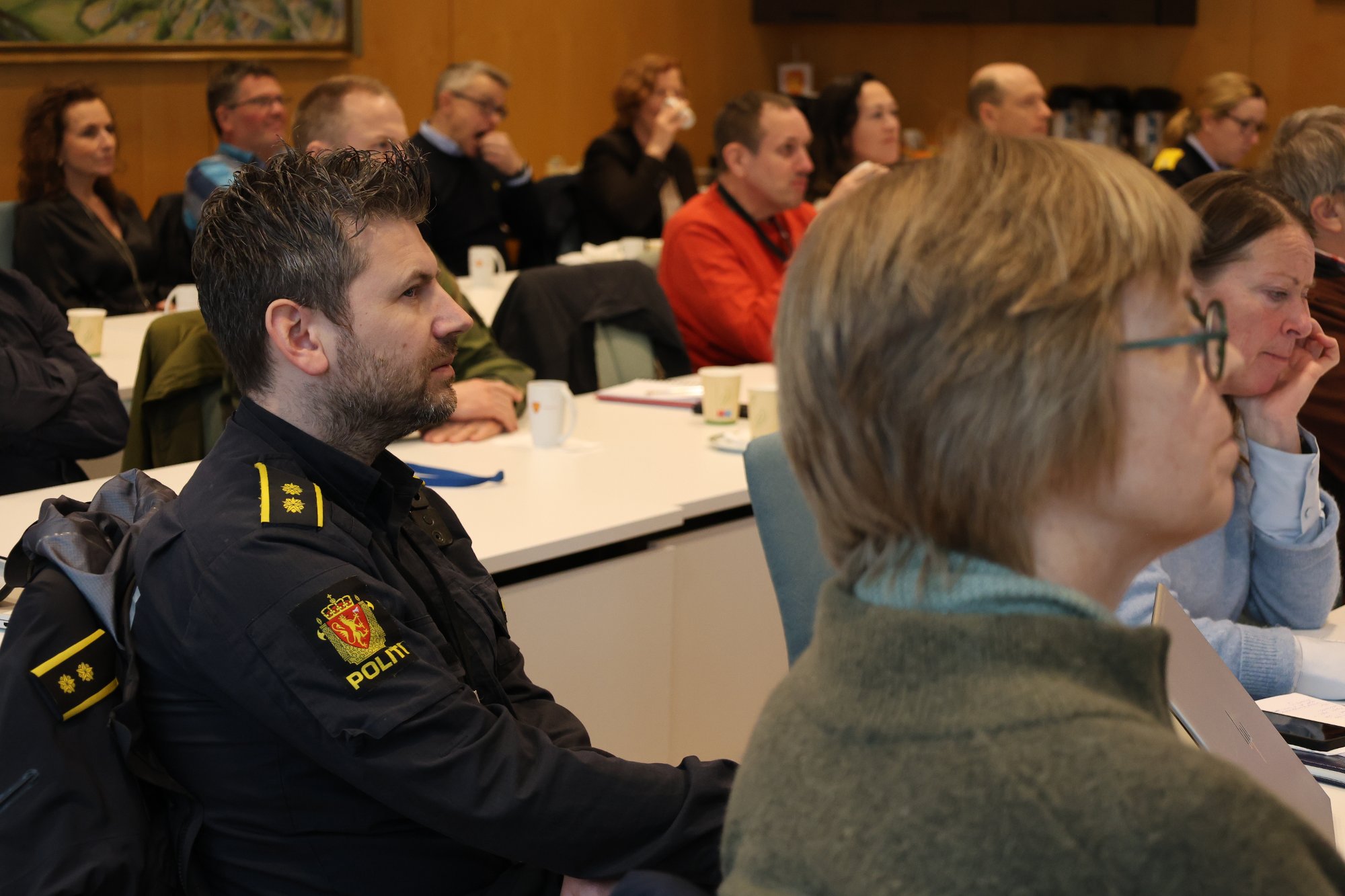 BÄde offentlege og private aktÞrar blei kalla inn til beredskapsrÄd pÄ kommunehuset torsdag. Butikkdrivar Tone Kristin L. Munthe og nÊringslivsleiar Steffen Kildal fortel at dei lÊrte mykje.