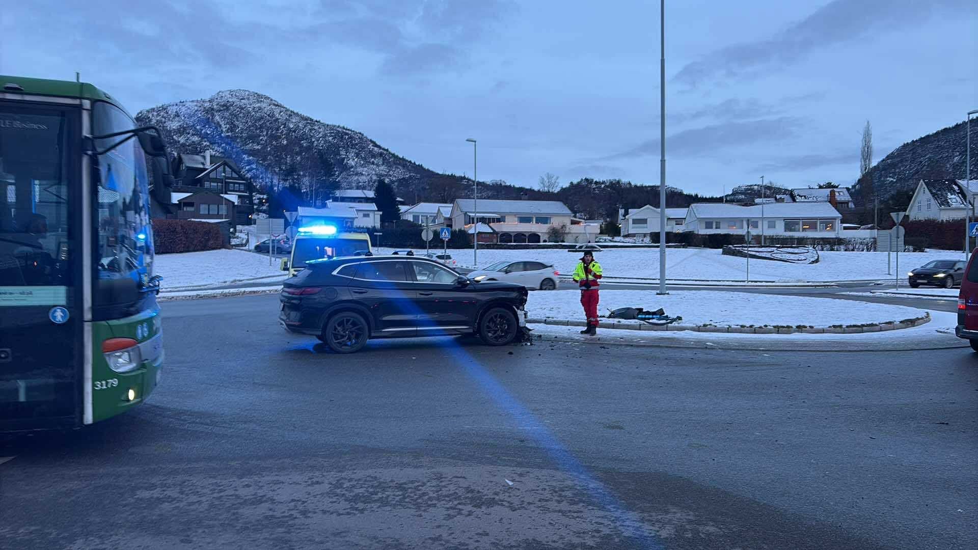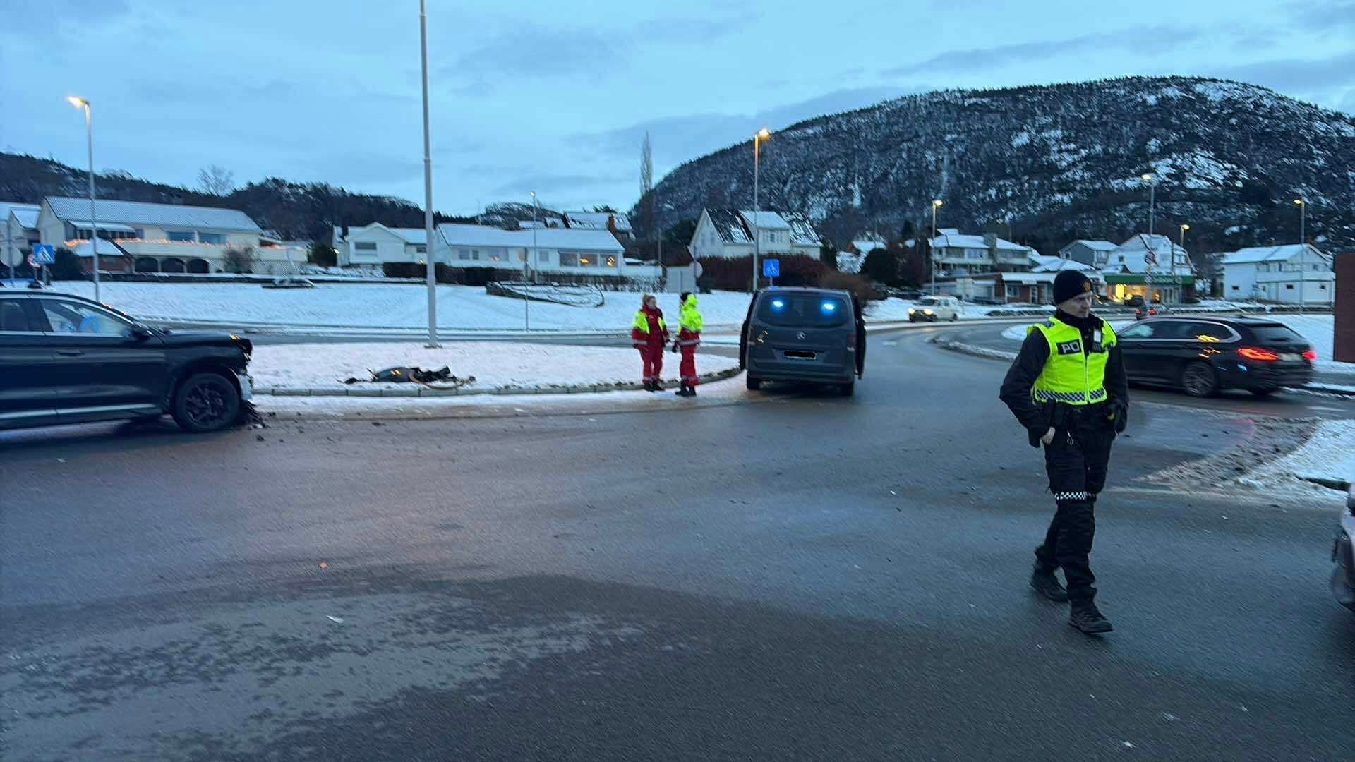 Operasjonsleiar Roger Litlatun fortel at den første meldinga politiet fekk om trafikkuhellet i rundkjøringa ved rådhuset på Jørpeland sa at det var bare ein bil involvert og ingen personskade.