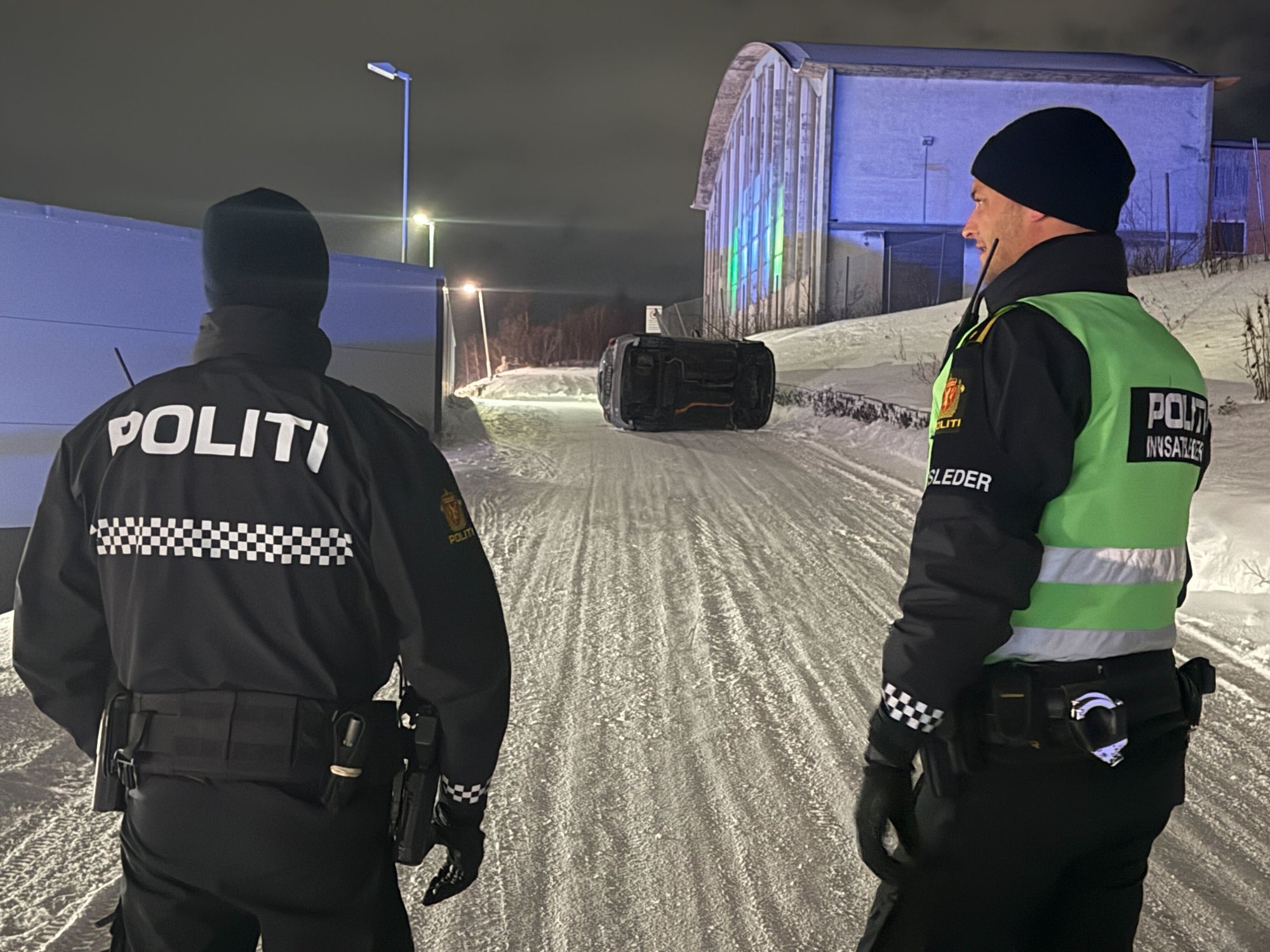 29. des 13:47 Politiet melder at en personbil ligger pÄ taket ved handelsparken i Kirkenes i SÞr-Varanger kommune. (SVA 70b)