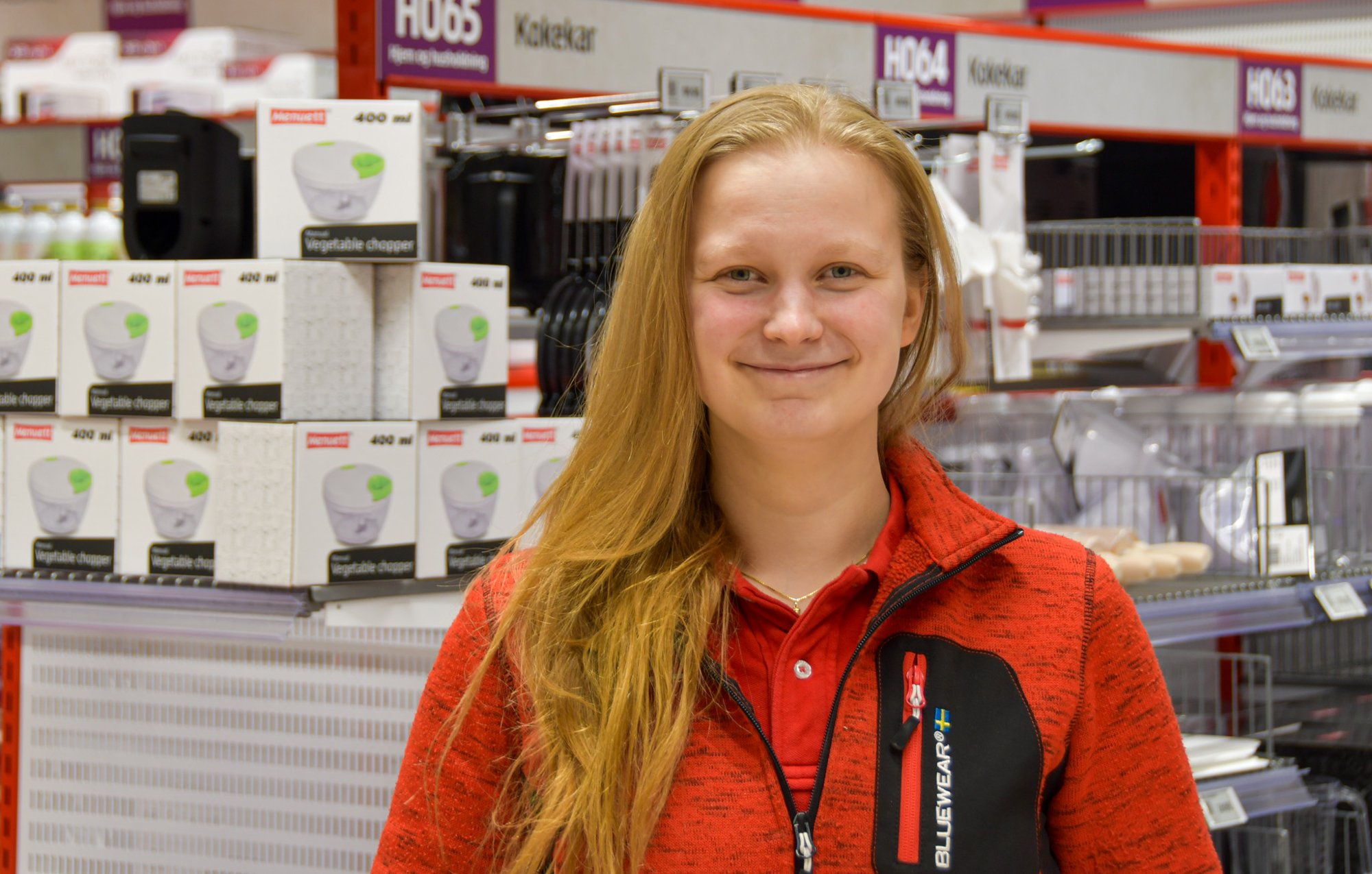 Tuvensenteret leker ikke julestress, men midt i kaoset finner vi den desidert yngste butikksjefen i kjeden. I kassa. Helt rolig.
