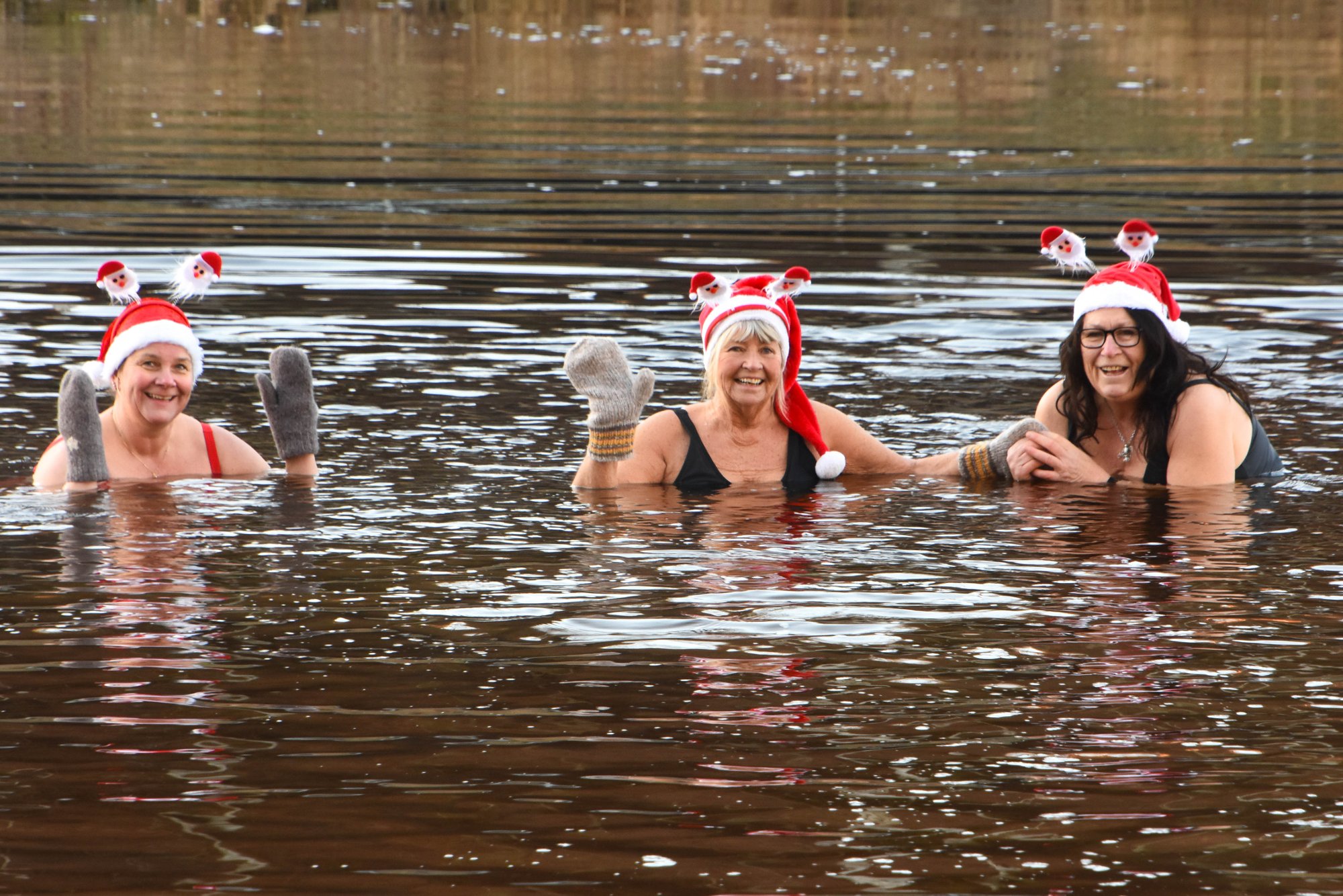 Julebad er en gammel norsk tradisjon. Eva, Ingunn og Gro Anita tok like godt julebadet i HeddÞla, med Telen pÄ slep.