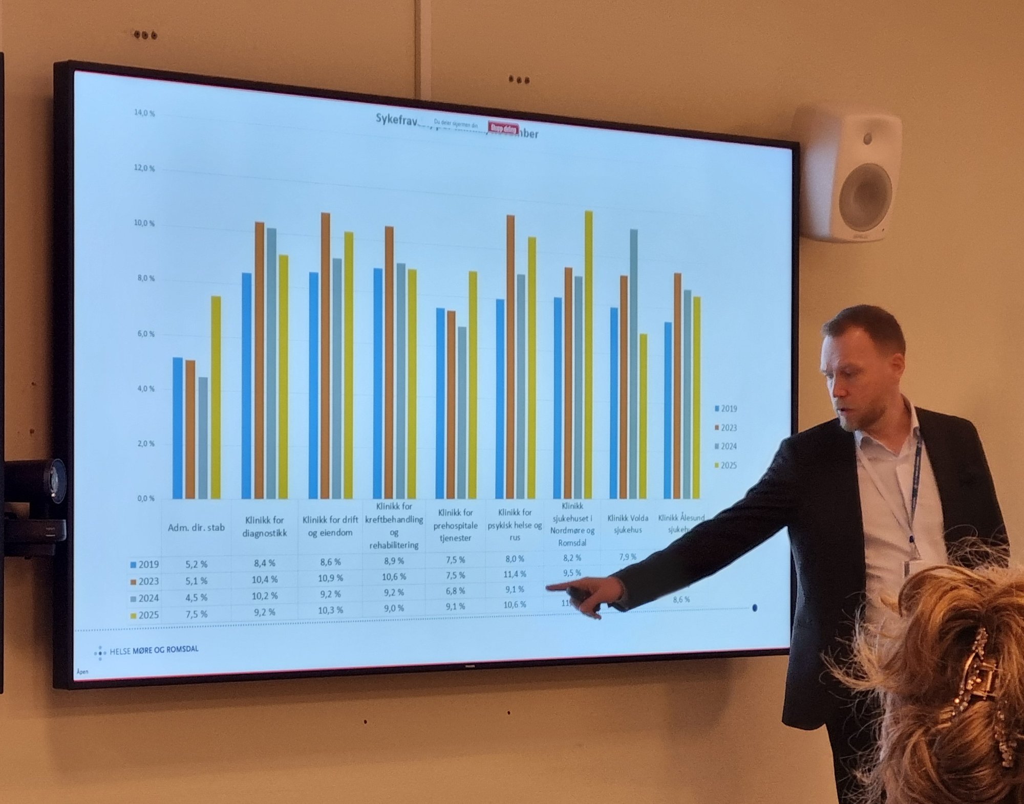 â Jeg har gĂ„tt langt tilbake i historien, og har funnet ut at vi aldri har hatt sĂ„ hĂžyt langtidsfravĂŠr som nĂ„, sa HR-direktĂžr Kjetil Lundberg da han onsdag presenterte bemanningsstatusen for Helse MĂžre og Romsdal.