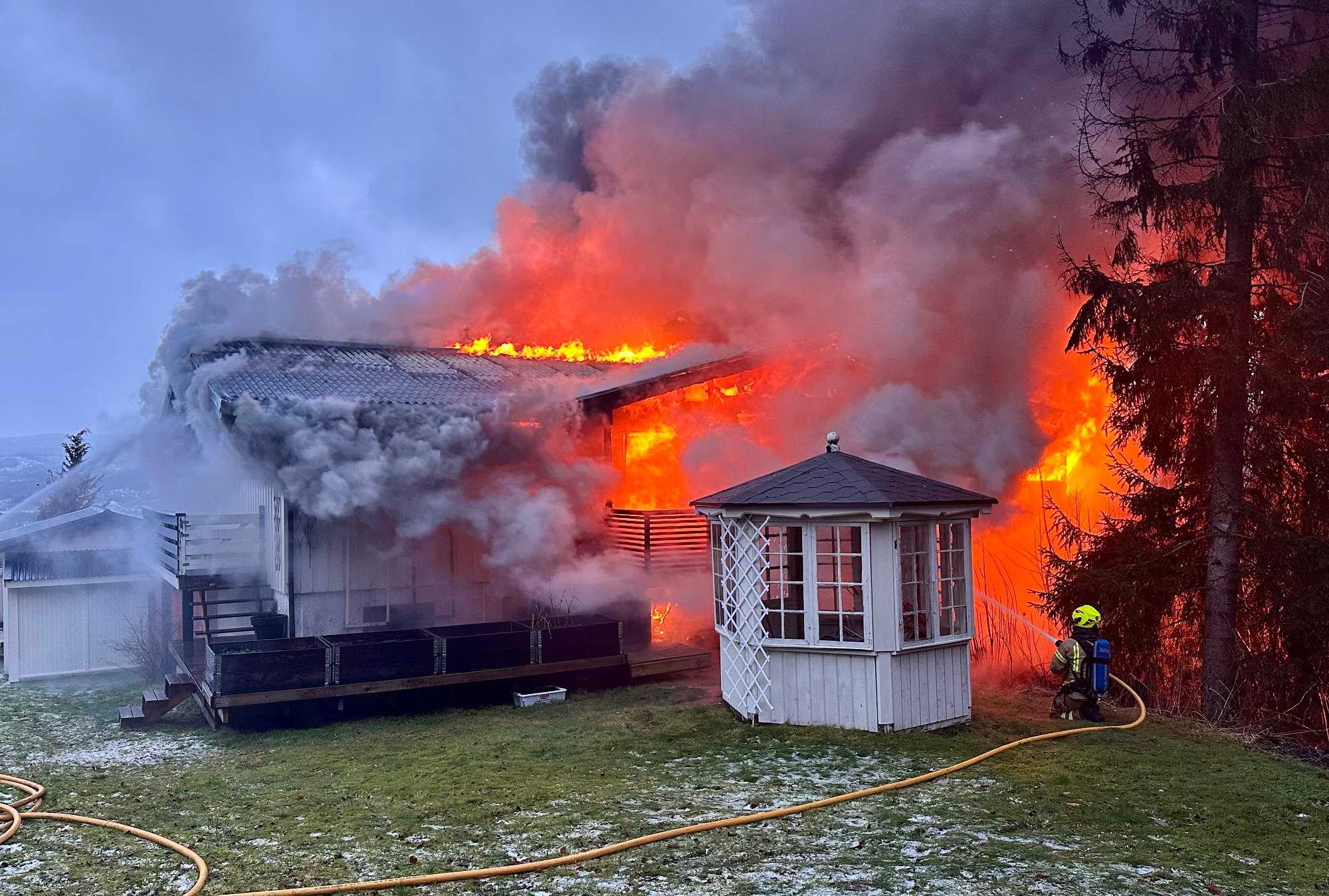 Bare timer før juleselskapet begynte det ü brenne. Fü minutter senere sto huset i full fyr.