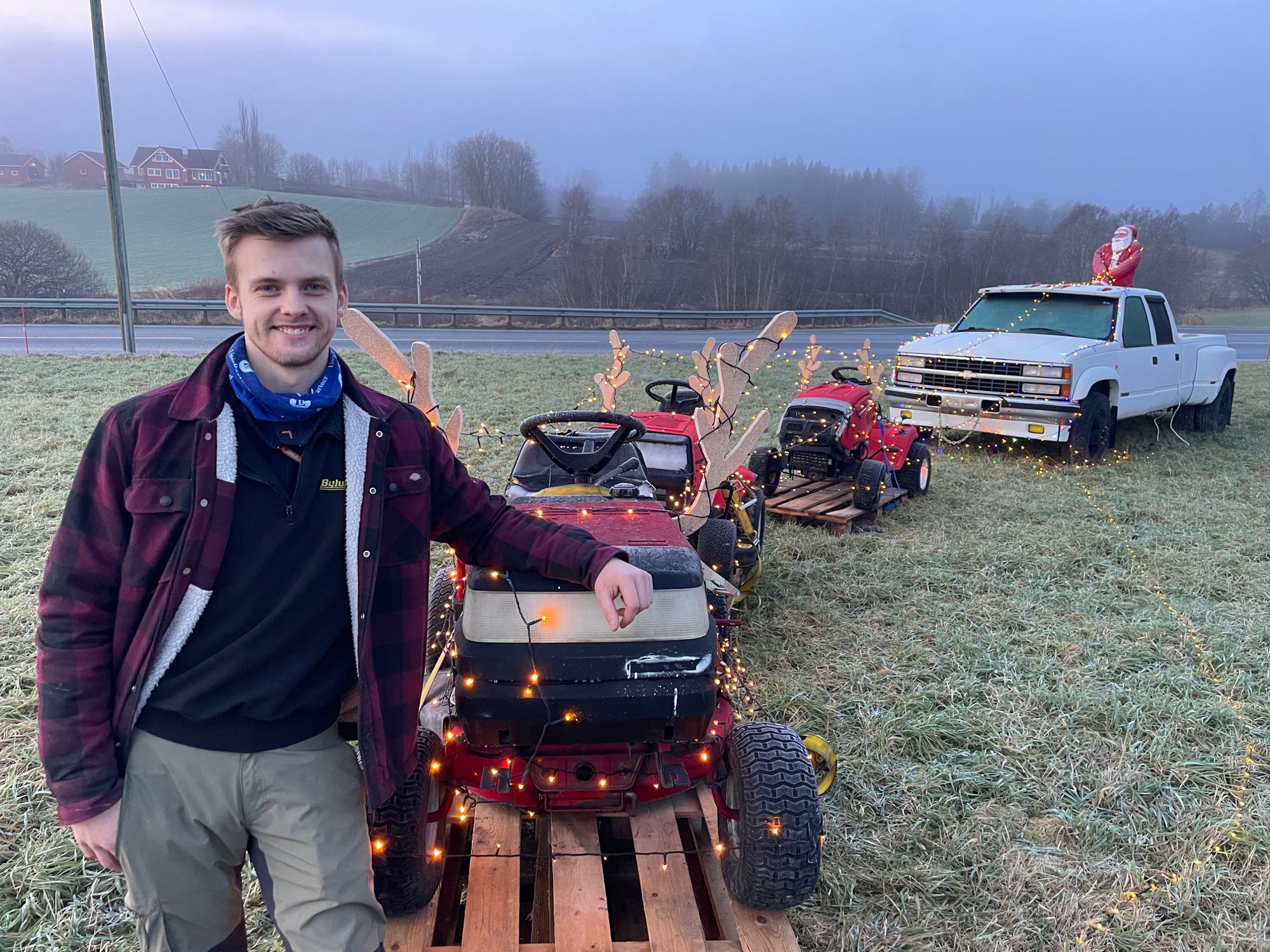 For de bilinteresserte naboene Erik Bylund og Ola Ystgaard var det naturlig å pynte den amerikanske pickupen før jul. Det var i fjor. I år blir kreativiteten tatt litt videre ...