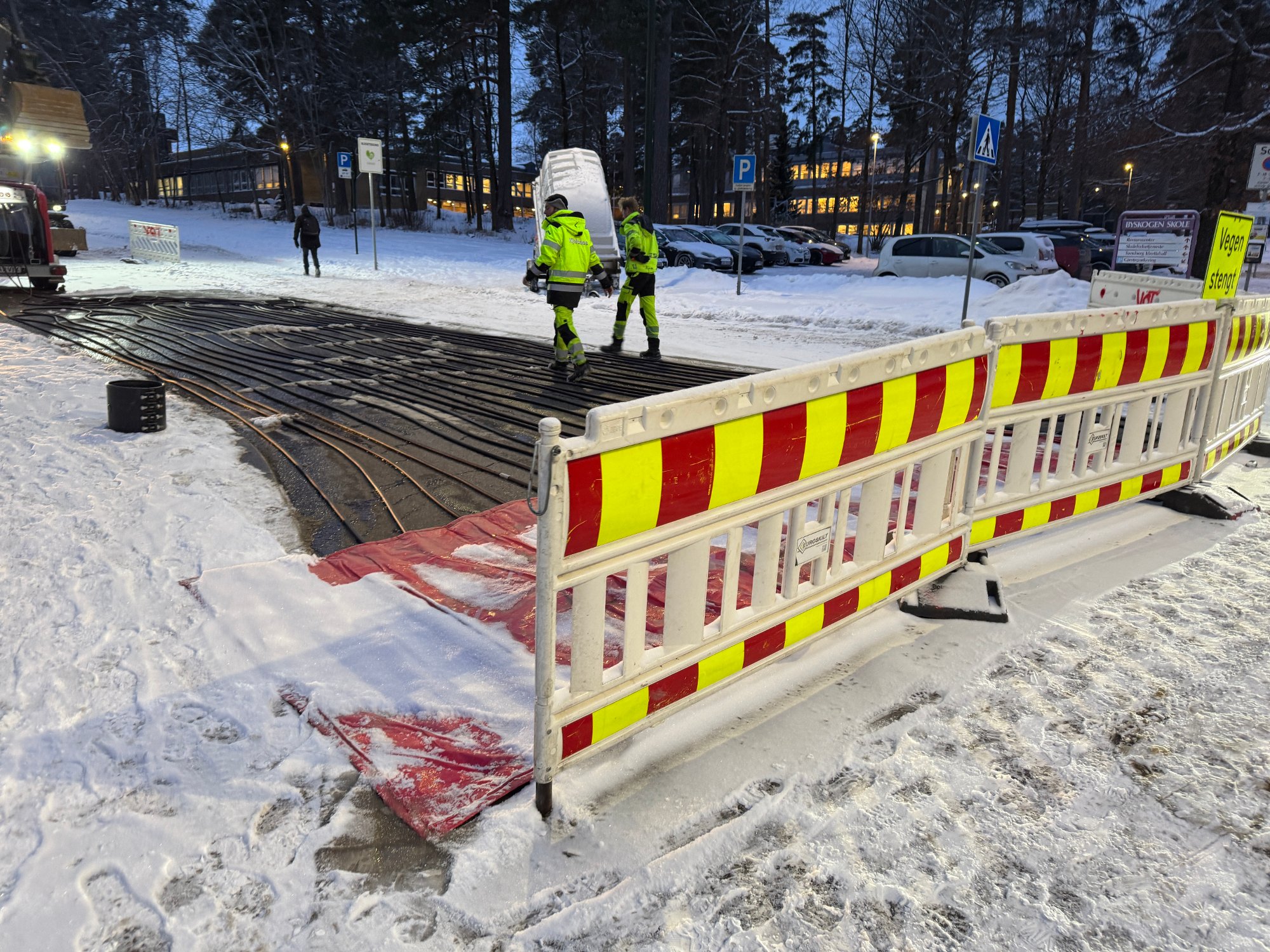 6. jan 8:28 Tirsdag er Trudvangveien stengt pÄ grunn av graving, og en reparasjon av en vannlekkasje. (TB 184b)