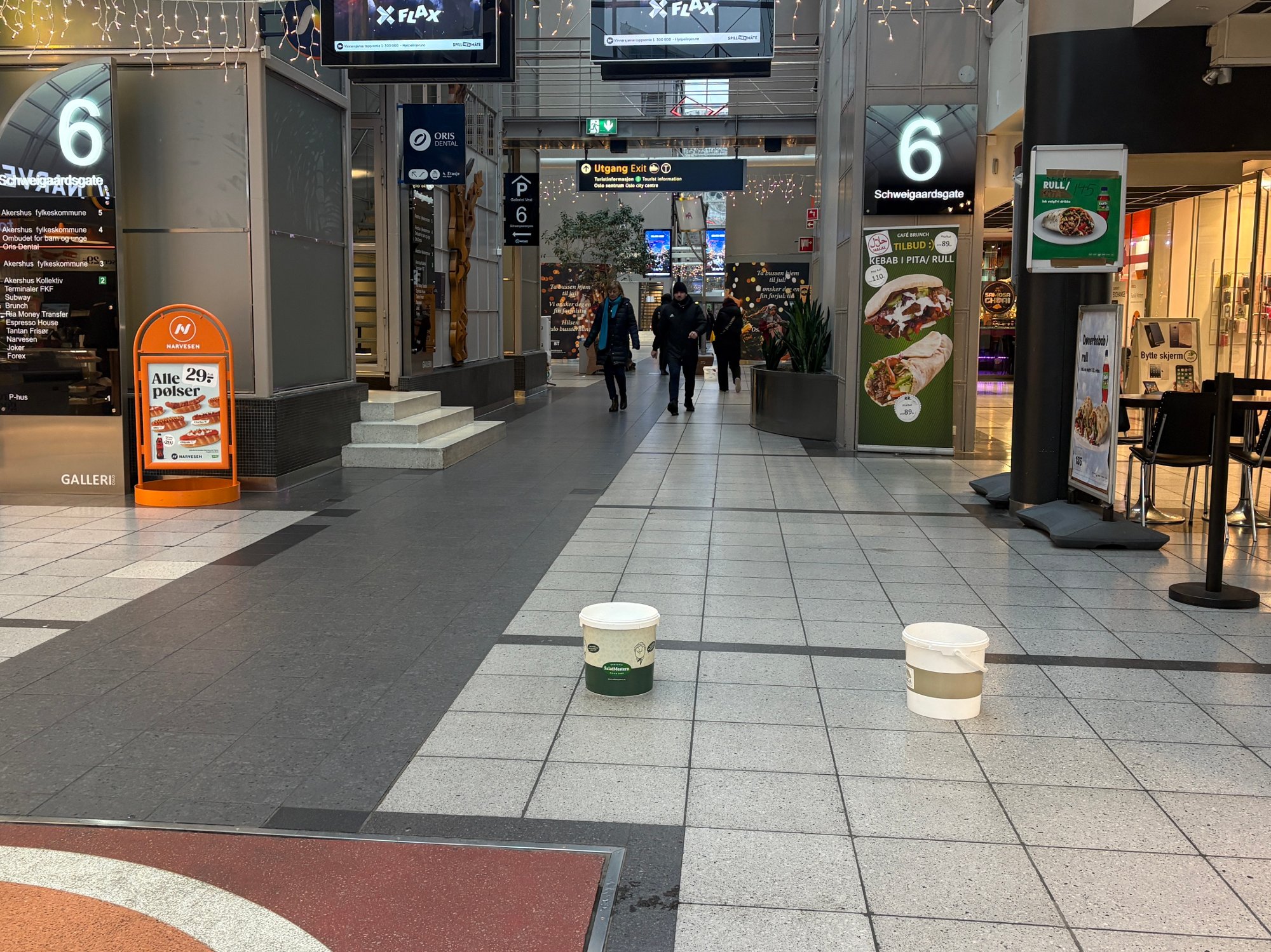 27. nov 13:12 Store mengder regn byr pÄ lekkasjetrÞbbel hos bussterminalen. (Avisa Oslo 202b)
