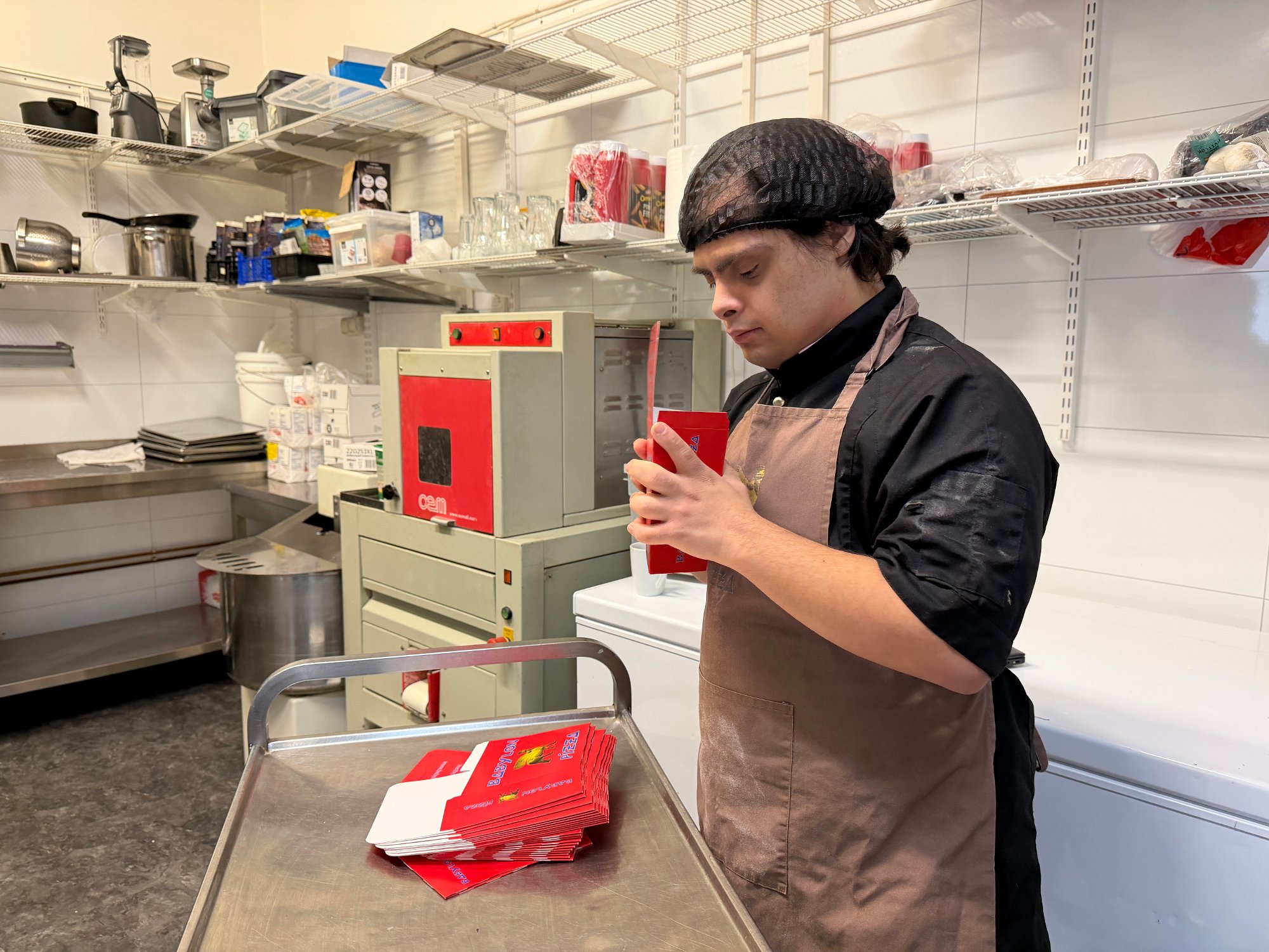 29. des 3:00 Han pakker pizzaesker, lager kebab og tar oppvask. For 20 år gamle Ahmed Almassri er jobben på Babylon Pizza i Ås mer enn bare en deltidsjobb, det er et skritt mot drømmer om egen leilighet og bil. (Ås Avis 356b)