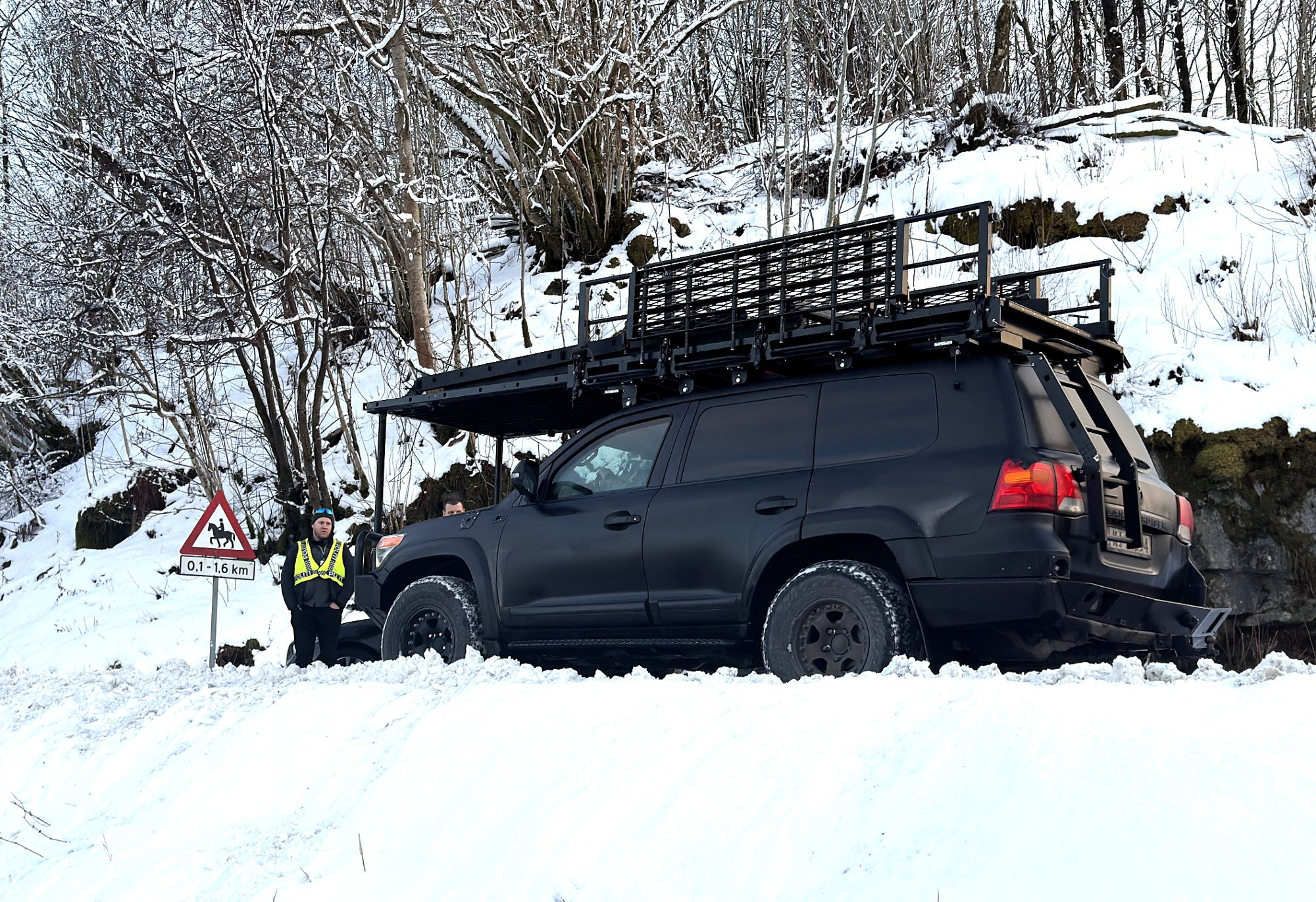 18. feb 14:53 Politiets pansrede utrykningskjøretøy av typen Terradyne Gurkha er på vei til Bergen i forbindelse med skytingen i Hordvik. (Åsane Tidende 752b)