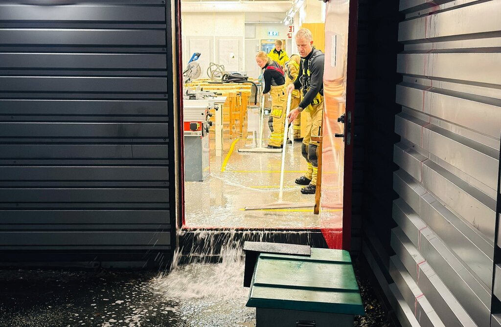 Brannvesenet på Breimyra skole i flere timer fredag kveld etter en større vannlekkasje.
