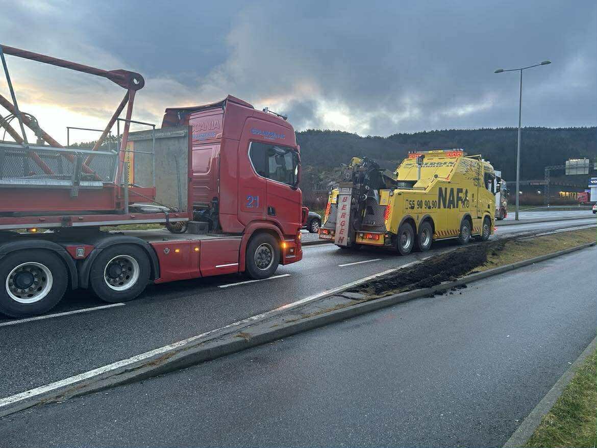 9. des 8:32 Lastebil med henger har fått motorstopp på Brurås. Det resulterte i lange køer i begge retninger mens bilberging pågikk. (Åsane Tidende 1.1kb)